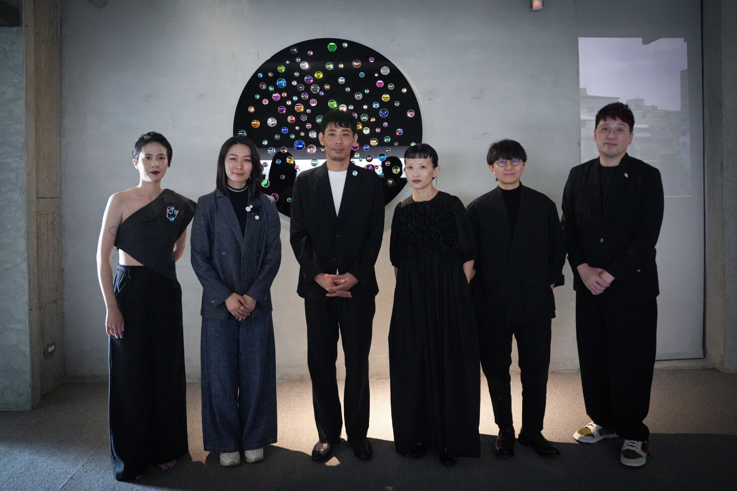 (由左至右)舞者蘇鈺婷、永添藝術執行長暨策展人邵雅曼、藝術家鎌田治朗、藝術攝影師陳詠華、導演王海齡、時裝設計師APUJAN詹朴。