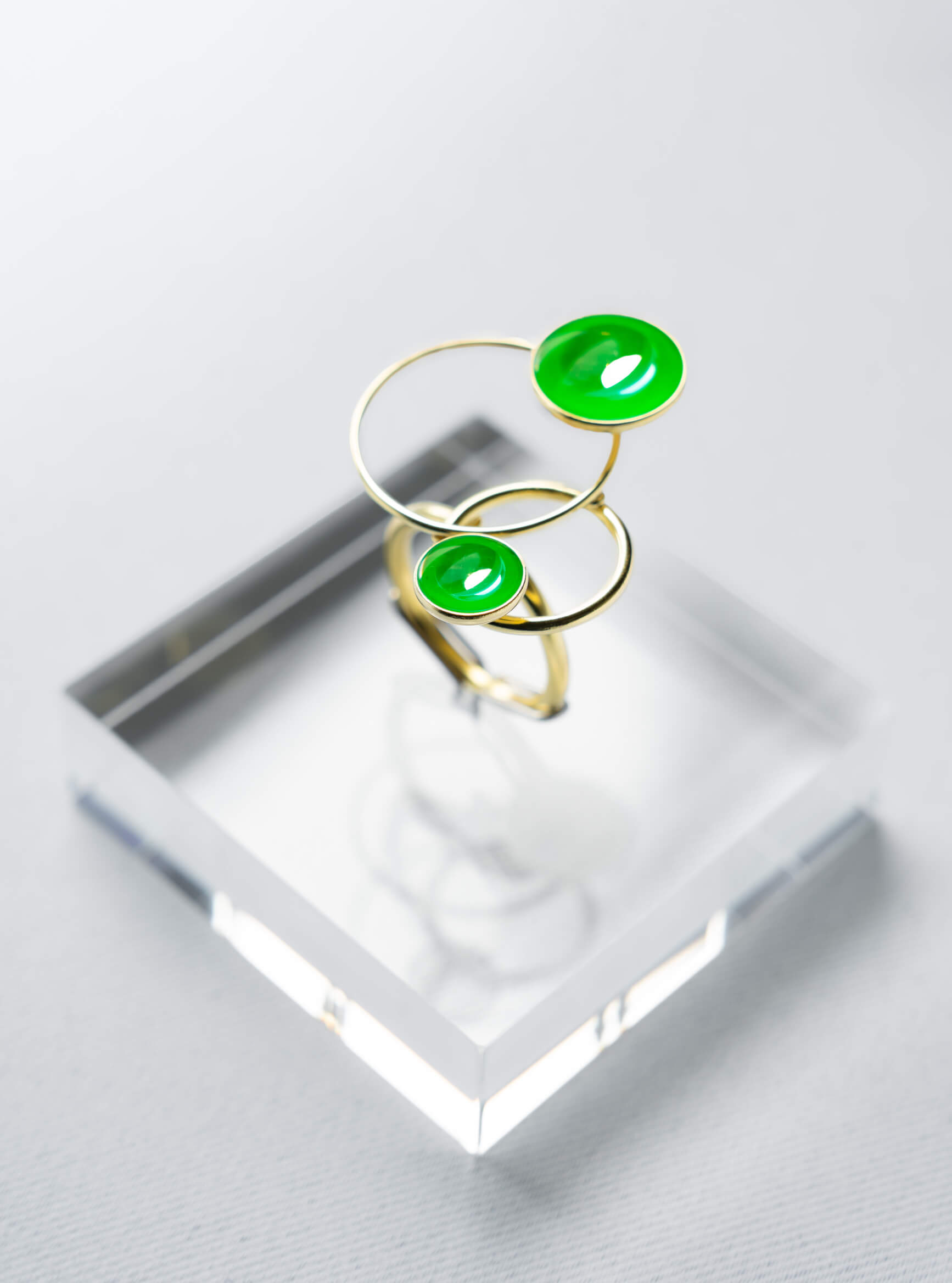 「當代首飾的價值不再局限於原料的稀缺性,而來自藝術家的原創思想,反映我們所處時代的特殊記憶。」邵雅曼說,鎌田治朗作品隨環境變化的色彩特徵、以及深邃空間,型態令人聯想到Anish Kapoor、James Turrell以光線創造的深邃空間。作品經由不同的角度,顏色不再被框架住,而是呈現出多元豐富的樣貌。有如自然界的細微變化。