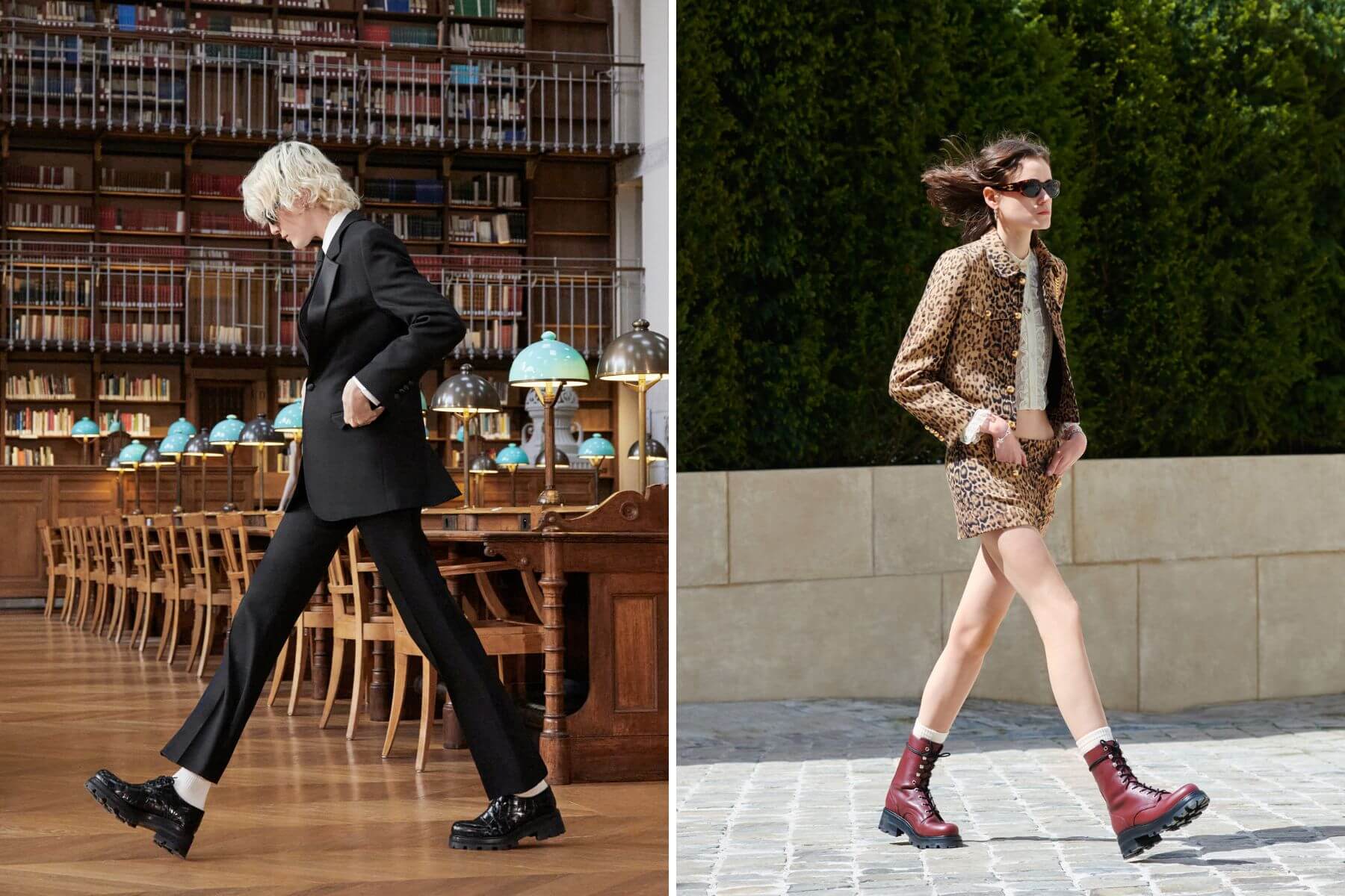 本季開場(圖右)與閉幕(圖左)的造型,足以彰顯創意總監Hedi Slimane自90年代末以來始終如一的標誌性設計與中性輪廓。
