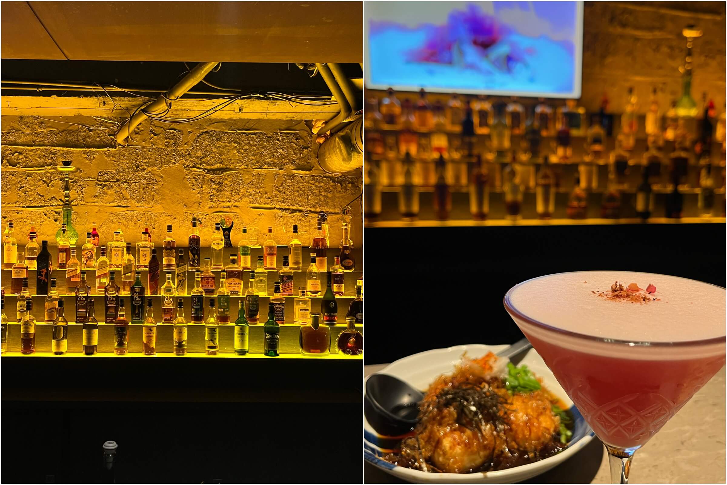 12呎長的吧台靜靜延展,恆溫酒櫃裡威士忌與紅白酒緩緩排列,每一瓶都沉澱著歲月的痕跡。「長島冰茶II」捨去可樂、改以咖啡酒與檸檬汁調製,帶出近似烏梅汁的熟成果韻,杯口點綴猶太鹽,層次深沉而不刺激;「Shiso Mojito」以日本紫蘇葉重新演繹,草本氣息隨氣泡緩緩展開,輕盈乾淨;粉色系的「Madman Rose」以琴酒為底揉合玫瑰花香與蔓越莓果酸,視覺與味覺皆有驚喜;「New York Sour」則以威士忌酸酒為基底,浮上一層紅酒,明亮酸香之後,果韻與單寧逐步展開,帶著成熟大人的韻味。不飲酒者也無須擔心,「無酒精紫蘇 Mojito」與喚起往日記憶的「蛋蜜汁」,同樣備受款待。