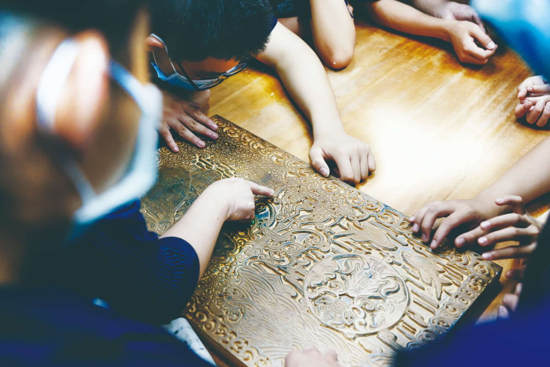木雕講師施懿紋於鹿江國際中小學講授木雕實作。