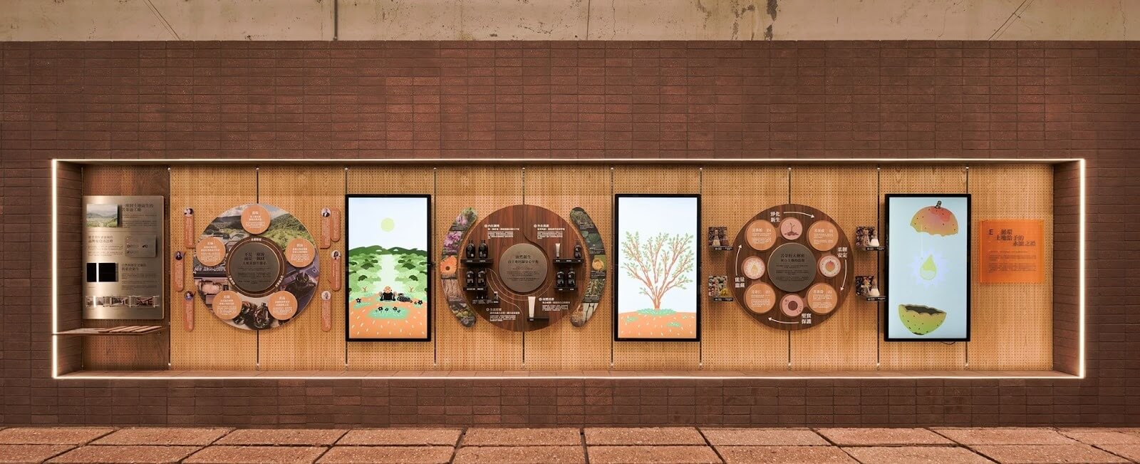 B區則是「培育」,呈現自2014年起,茶籽堂成立農業規劃團隊、踏查全台產區並與農民推動契作的歷程,展區以科普視角說明苦茶樹如何在風土中生長、與社區共生,讓農業成為具文化意義的行動。