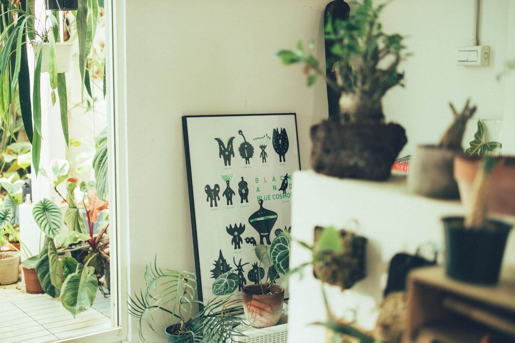 最後他指著牆壁上貼著初代的黑青海報,是他10年前的畢業製作,以生態為題,種子具象有個性的角色,一直延續到現今陳普的創作都能看到黑青的存在,回頭看更像是冥冥註定的緣分,今年正在與朋友討論以3D列印打造可拼疊組裝的花器,3個月前開創的YouTube頻道「PIBI GARDEN」,記錄下自己的植物與種植之路上相遇的植人。