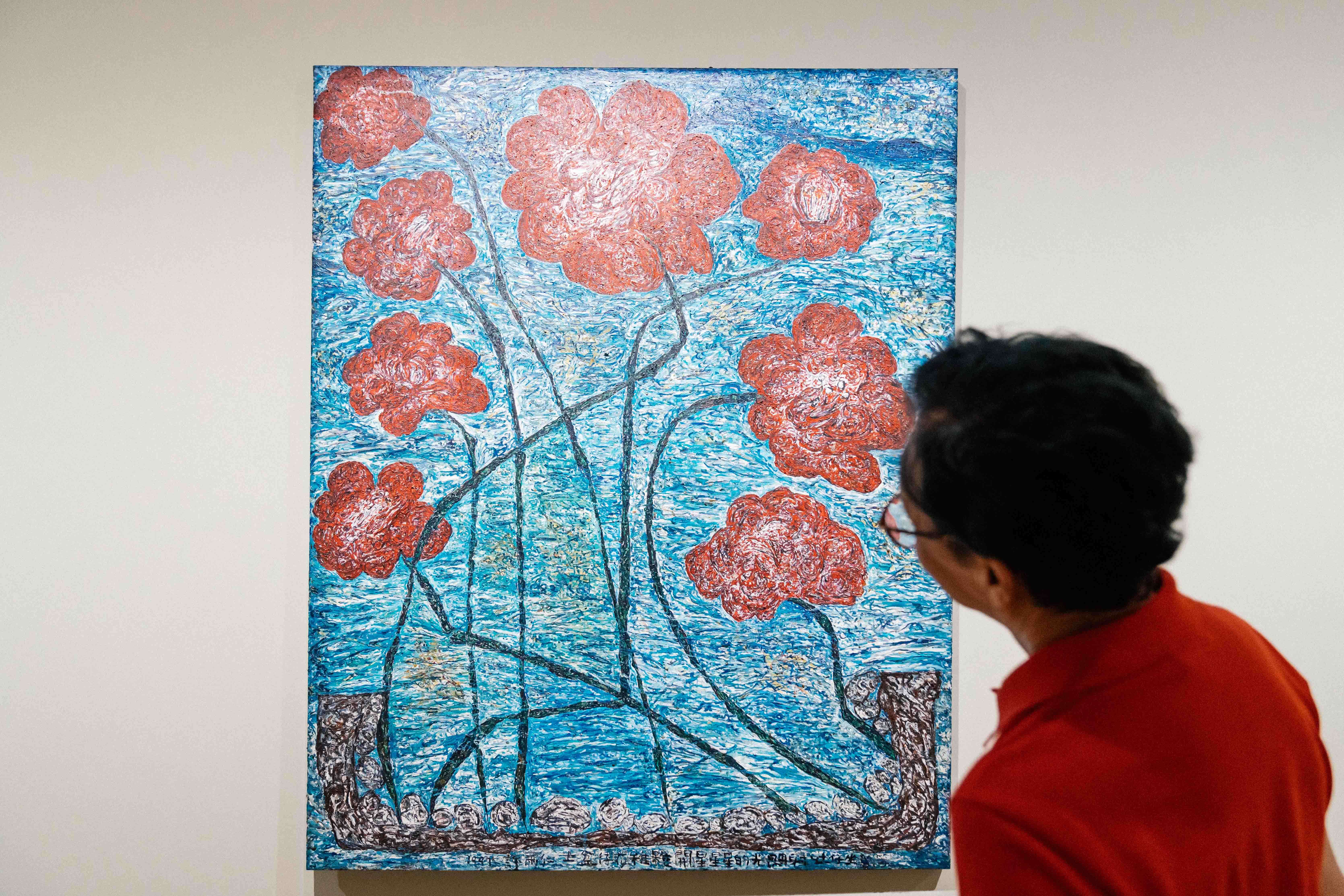 上一次來到北美館是兩年前了,這次因為採訪,姚謙再次踏入北美館,並沉浸在台灣畫家許雨仁的繪畫世界。1950年代出生的許雨仁,作品時常有著惆悵、抑鬱,這在他1989年第三次從美國返台定居後仍沒有改變。許雨仁畫的〈土盆仔花稚影開 星星星的光明射 土仔坐等等〉、〈花與船〉讓姚謙看得入迷,甚至會把眼鏡拿起來,近距離欣賞,「這幾位台灣藝術家跟我差不多年紀、甚至有接近的生活區域,就會有很多共同記憶,而許雨仁就留住了那一個世代對台灣的情感、審美與價值觀。」