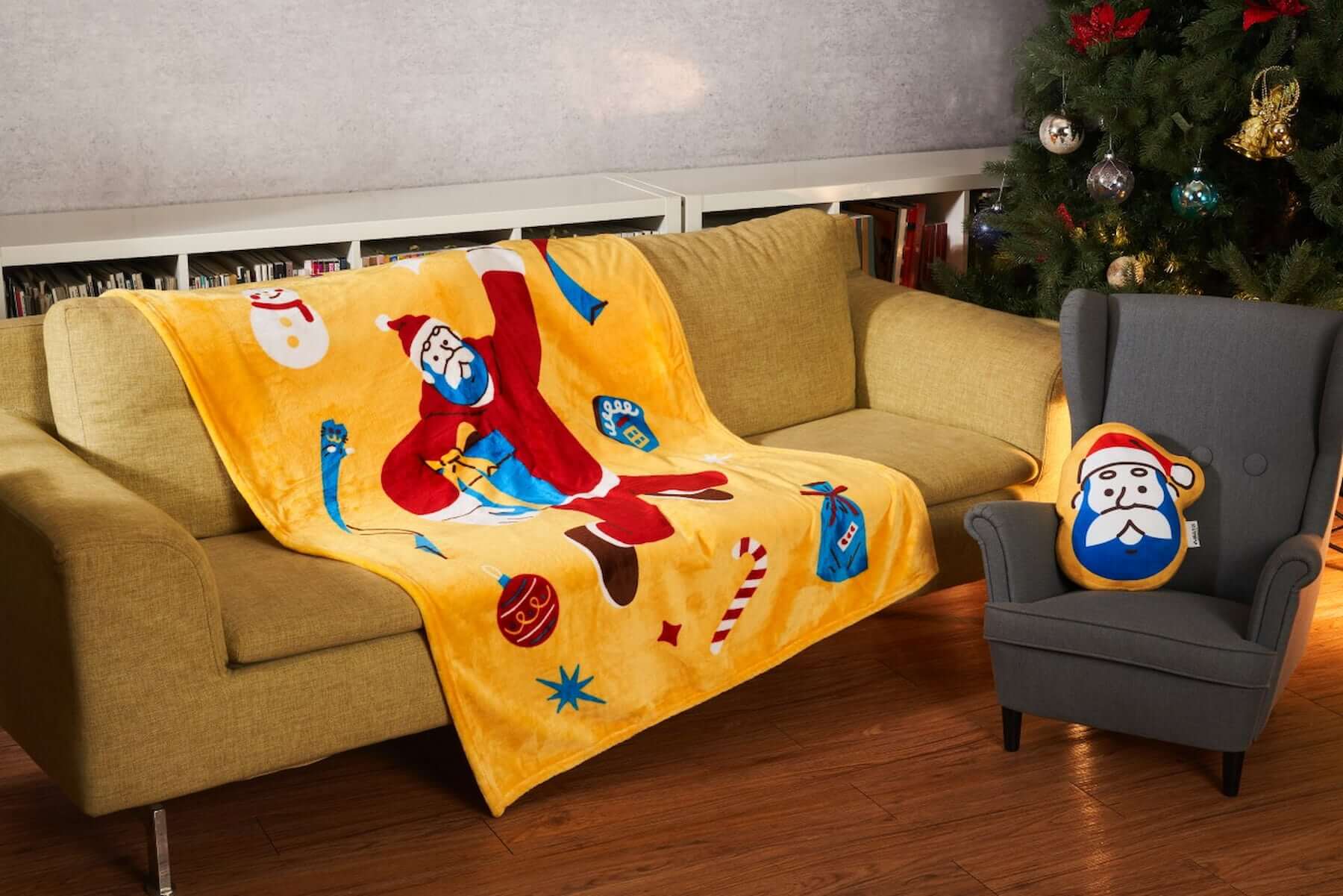 四季毯與造型枕等多款聖誕鬍子大叔周邊商品,消費滿額可加價購。