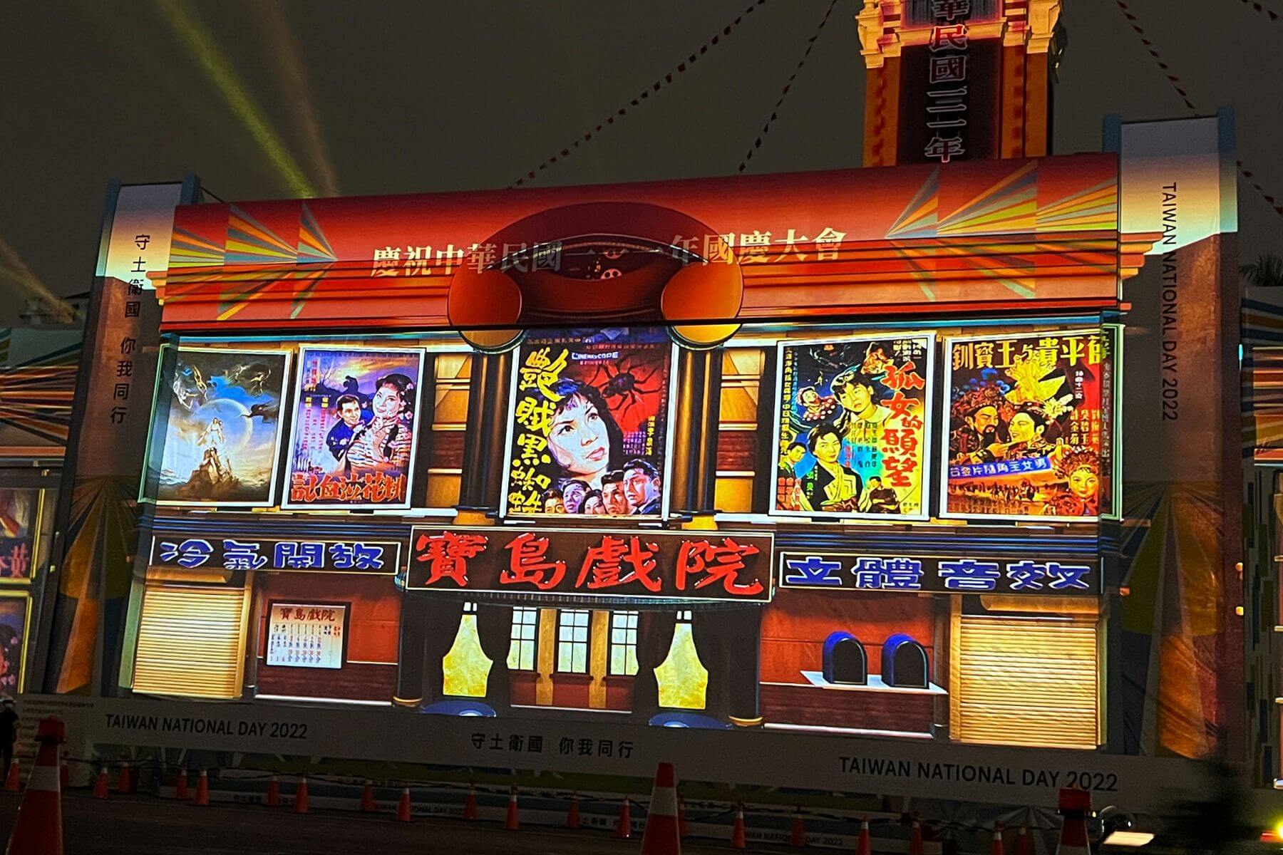 2022年總統府前國慶光雕展演「寶島有光・土地之愛」,重現陳子福手繪海報經典。(圖片/國家影視聽中心提供)