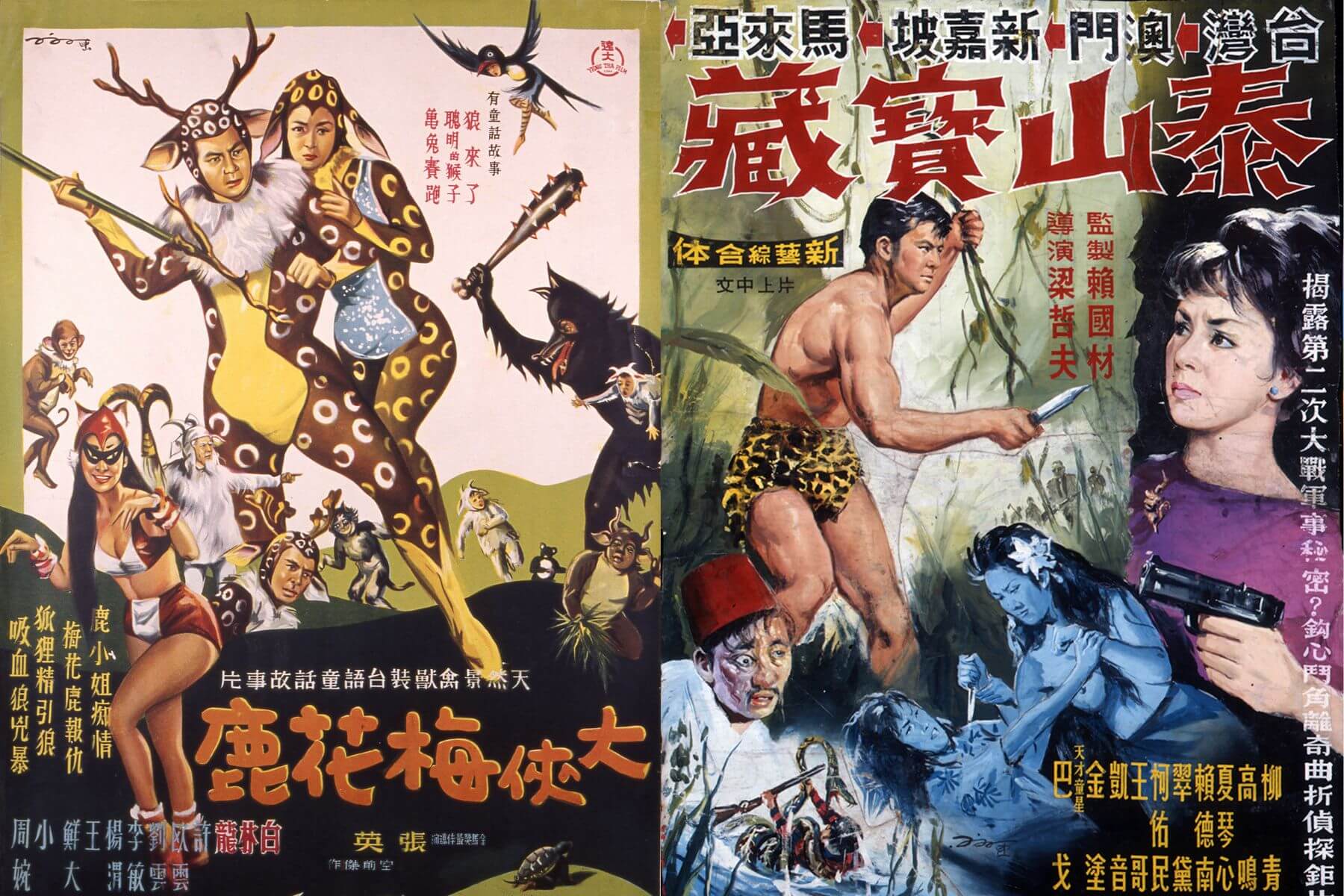 陳子福先生繪製的《大俠梅花鹿》及《泰山寶藏》海報。(圖片/國家影視聽中心提供)