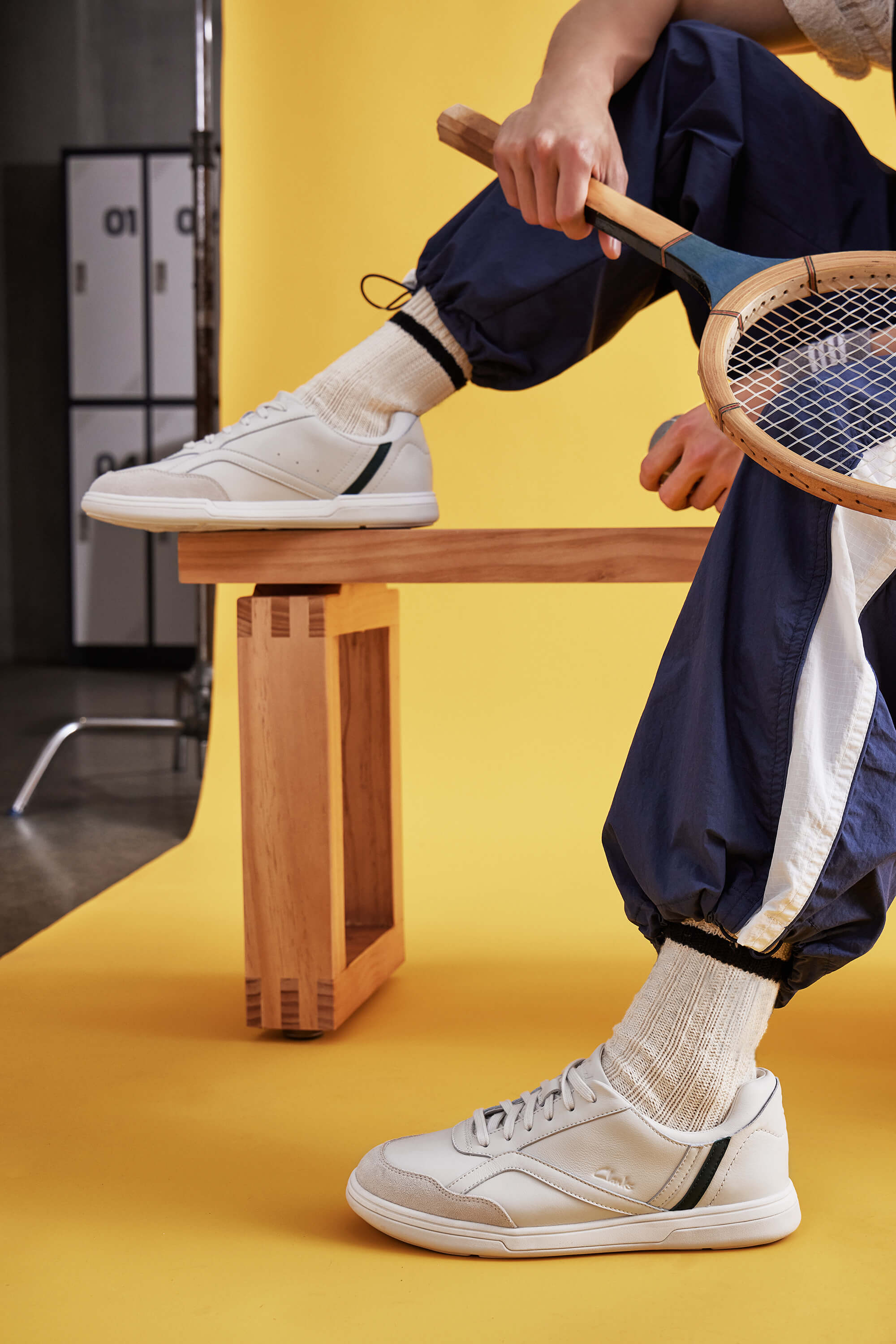 CRAFTRAVEL 空氣鞋:同樣為Clarks亞洲獨家力作,專為亞洲腳型量身打造,並以網球元素延伸鞋面設計與情侶款概念,鞋墊圖騰更巧妙融入「飛機航道」視覺化氣流,呼應長途移動如頭等艙般的舒適體驗。鞋款導入升級版 Active Air 空氣循環系統與人體工學足底支撐氣囊,搭配水幕之盾 CHICLING® 超纖鞋墊表面,實現抗菌、吸濕、透氣、高彈緩震與按摩穴位等多重機能;鞋墊底部使用巴斯夫高性能聚氨酯材質,輕彈減震且強韌耐穿。外觀方面,鞋面採優質輕薄牛皮,結合輕盈柔軟 EVA 中底與耐磨橡膠大底,全方位兼顧都市通勤與遠行需求,帶來羽量級腳感與頂級舒適。