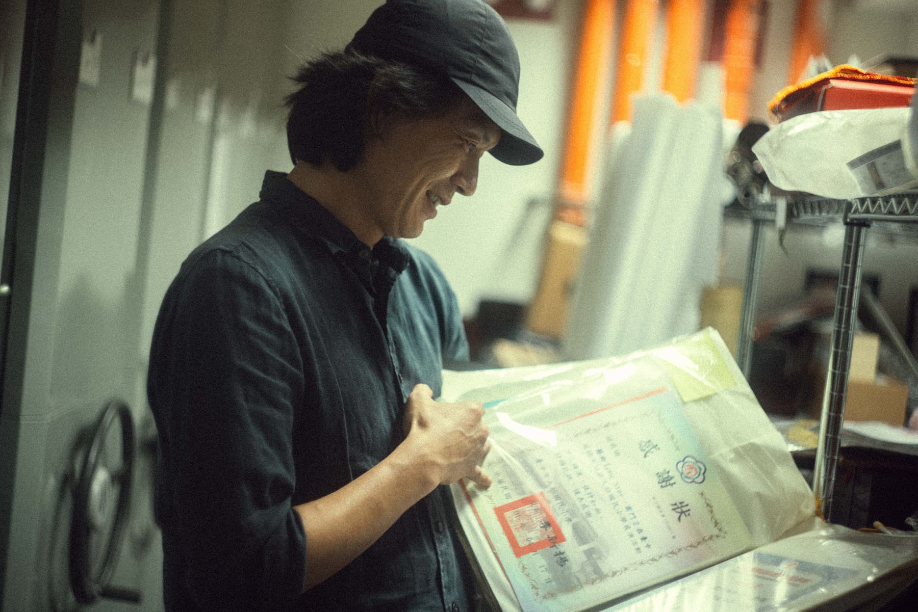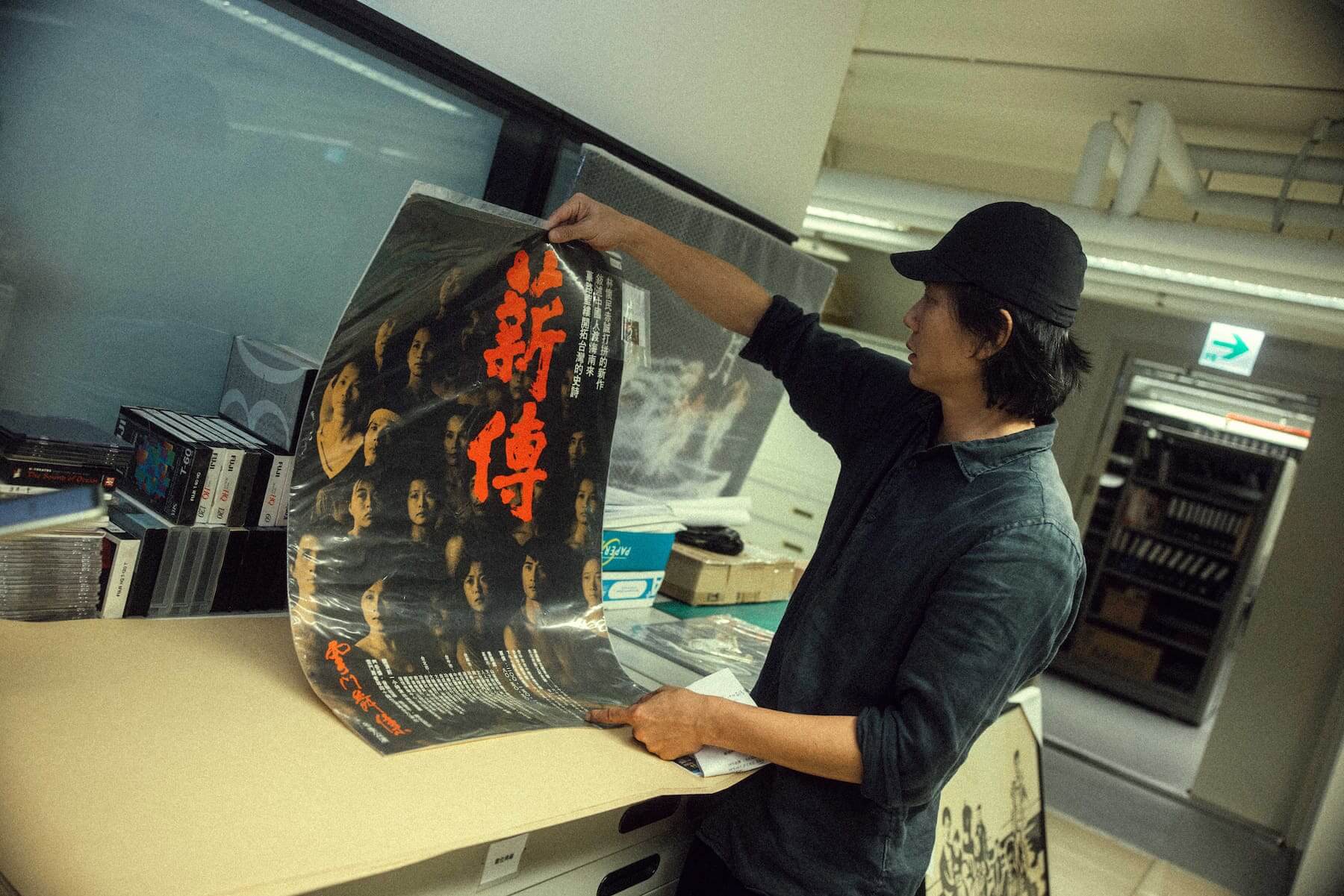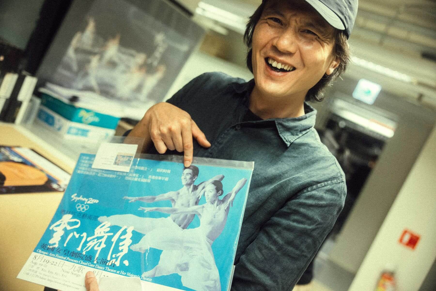 如今掌管雲門的鄭宗龍,此刻正在裡頭忙著翻箱倒櫃,一件件文物從典藏室魚貫出場,有過去演出的海報(數張)、歷年得獎的獎盃(數座),以及仔細護貝過的舊報紙(厚如磚頭)⋯⋯當一切物品按時序排開,眼下儼然是一部3D的紀錄片。