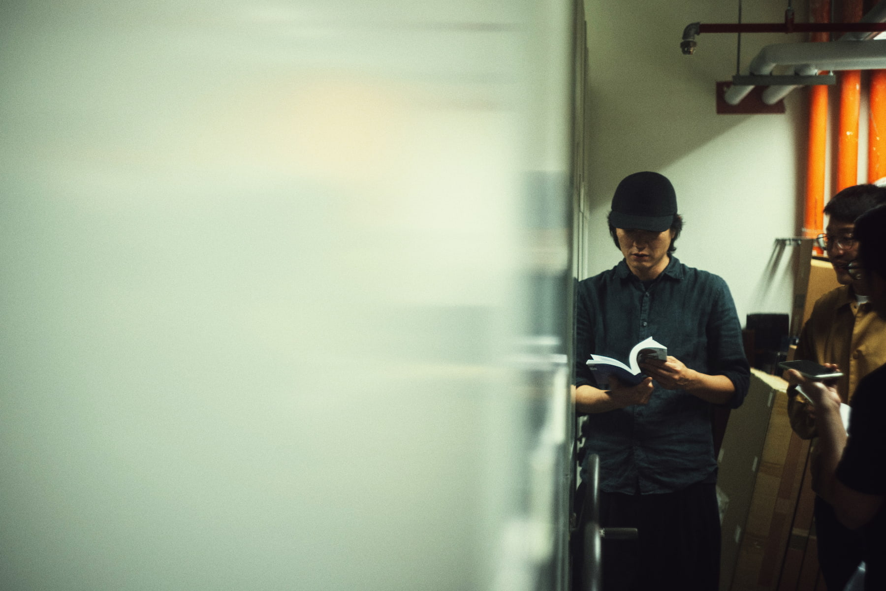 雲門舞集藝術總監鄭宗龍親自為《VERSE》導覽「雲門典藏室」。(攝影/吳昭晨)