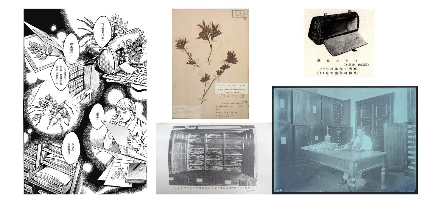 漫畫家英張在《採集人的野帳》中呈現日治時期「中央研究所林業部腊葉館」(今台北植物園)。