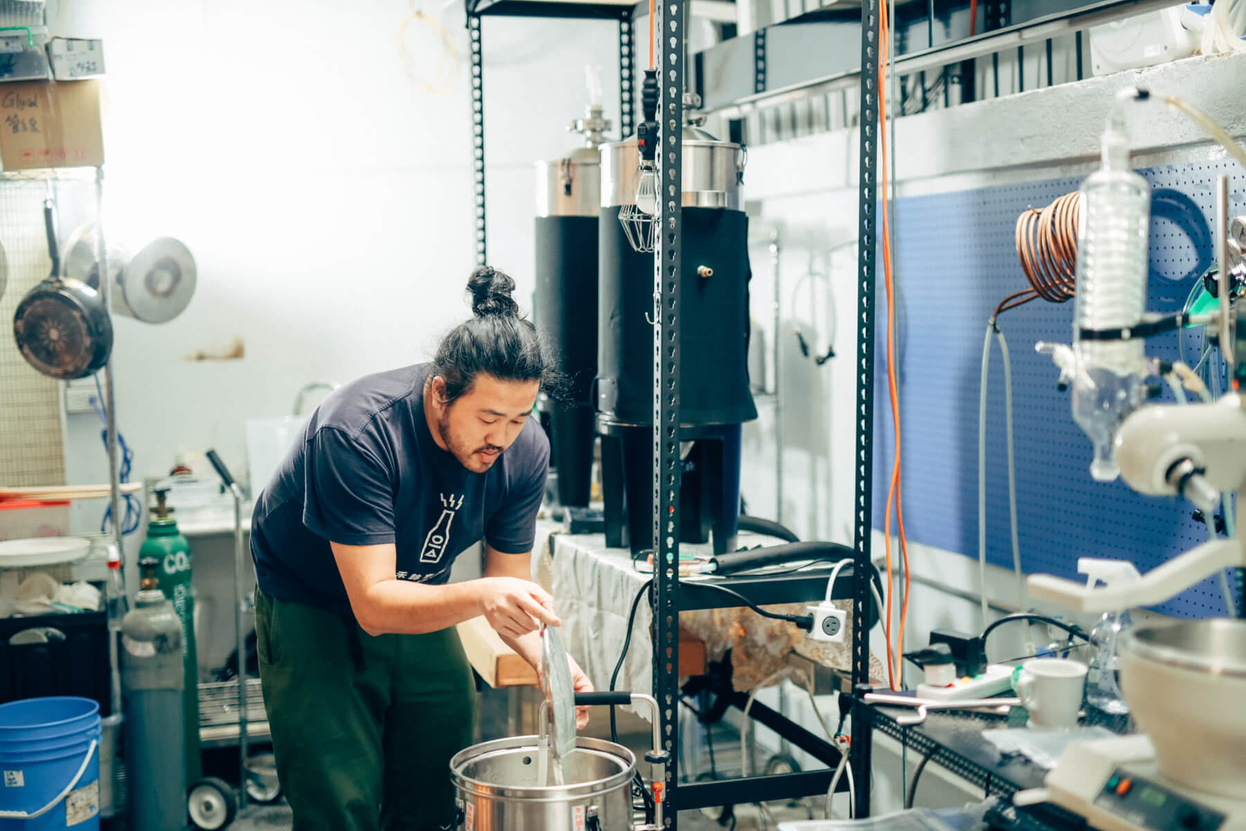陳昱廷正在禾餘實驗室進行試釀。