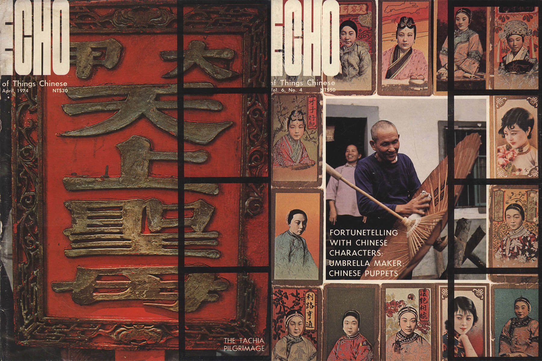 左圖:《ECHO》1974年Vol. 4, No. 4,該期內容為大甲媽祖進香團八天七夜全記錄;右圖:《ECHO》1976年Vol. 6, No. 4。