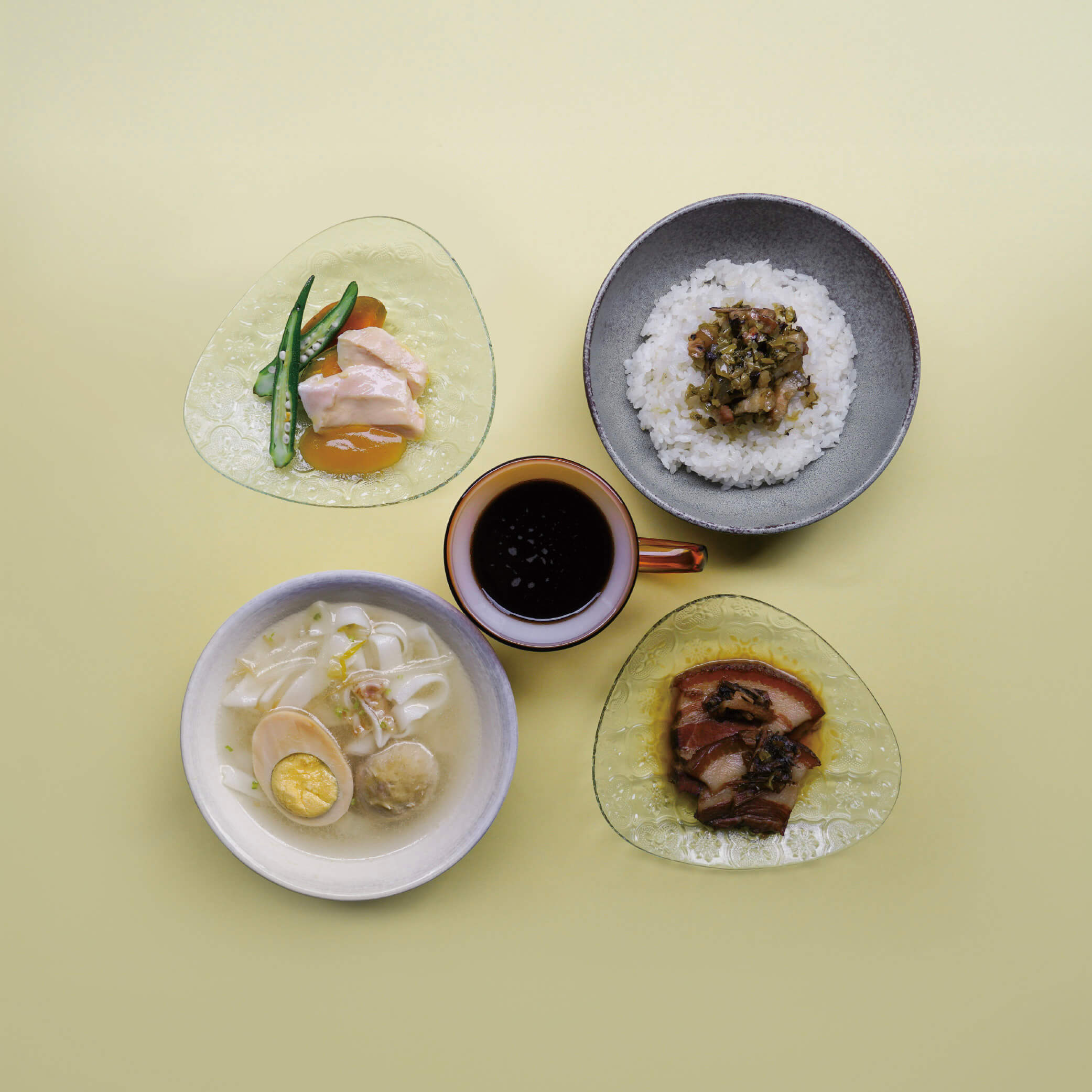 「d47食堂」總監相馬夕輝與料理長植本寿奈,花費一週造訪新竹將近50個餐飲品牌、產地與店家。兩人深刻理解桔醬的苦甘風味、醃漬芥菜的保存智慧、醫食同源的文化特色,以及善用豬肉各部位的食材研發精神。這些風土食材經由「d47食堂」研發為「新竹定食」,而「或者新州屋」餐飲團隊與「Fancy Tofu」創辦人Bee則以日式料理手法詮釋客家食材風味,共同研發出「新州屋定食」。邀請讀者從專刊到飲食,體驗新竹豐厚的客家飲食文化。
