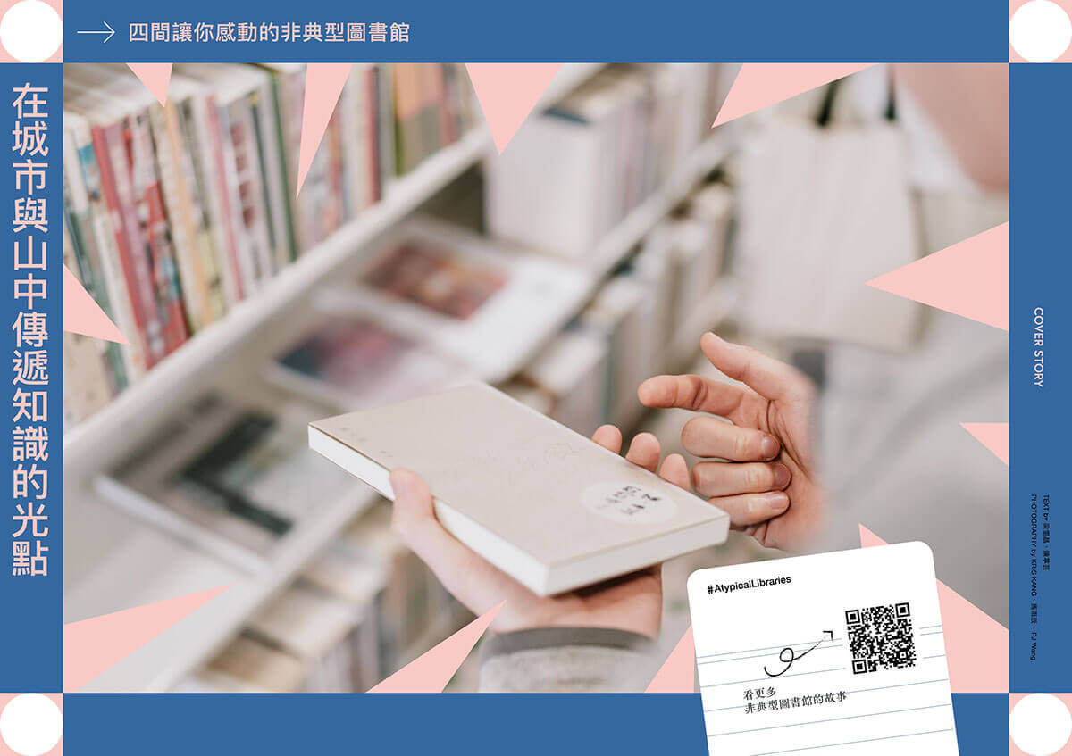 探訪四間必去的專門圖書館,從兩廳院的表演藝術圖書館到中華飲食圖書館;推薦最值得拜訪的「非典型圖書館」:你知道在三貂嶺山中有一個香港人,改造老建築設立的以香港為主題的圖書館嗎?或者在嘉義的台灣圖書室,以及台南已經是文青必去的RoomA和新開的敝墟書店?