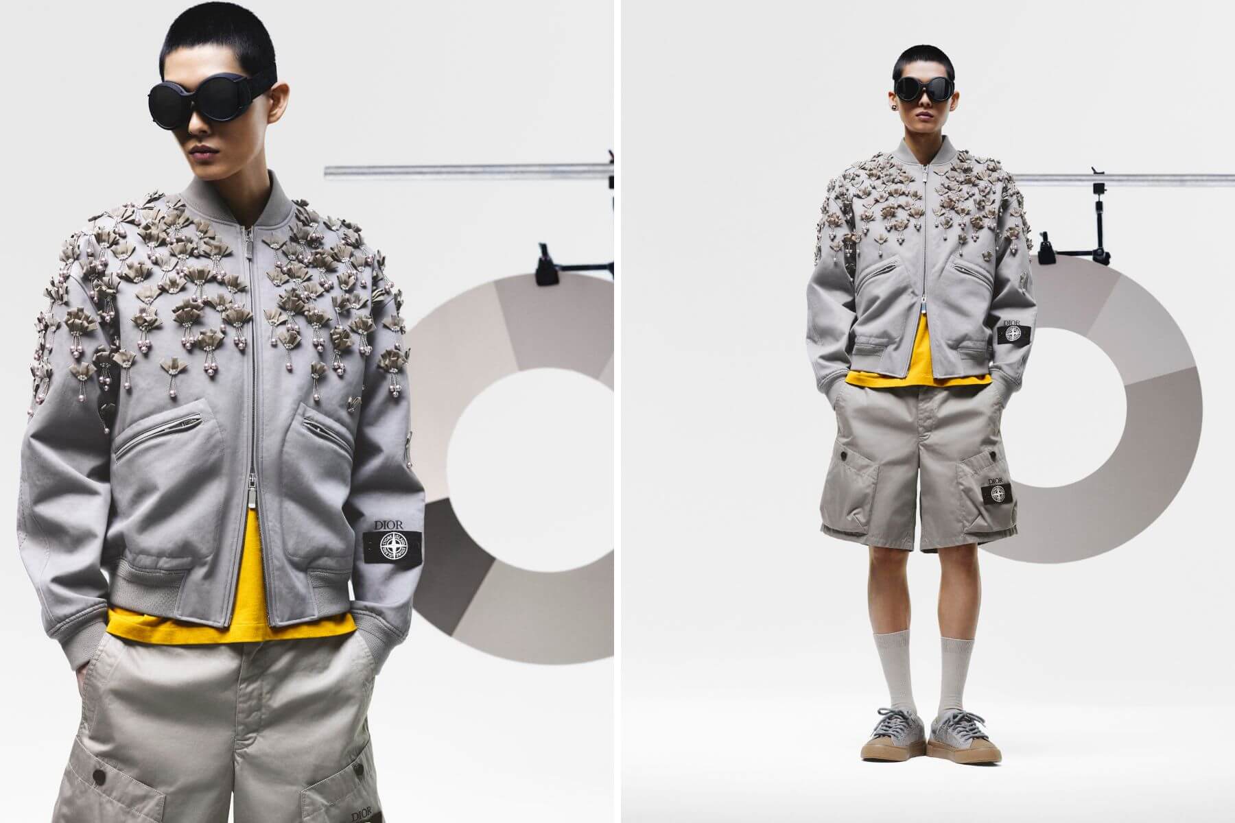 聯名體現出Kim Jones為Dior男裝所建立的招牌輪廓,加入Stone Island標誌性的標誌與機能元素。