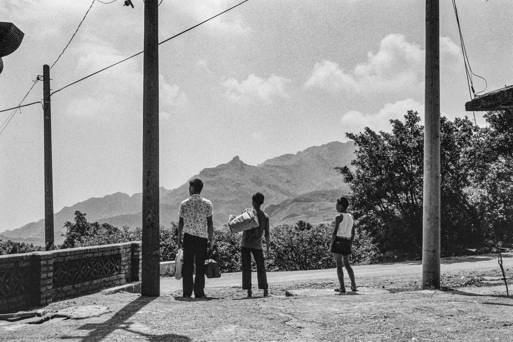 在拍攝主角回鄉的現場,劉振祥用鏡頭捕捉到正在等車下山的當地青年。(攝影/劉振祥)