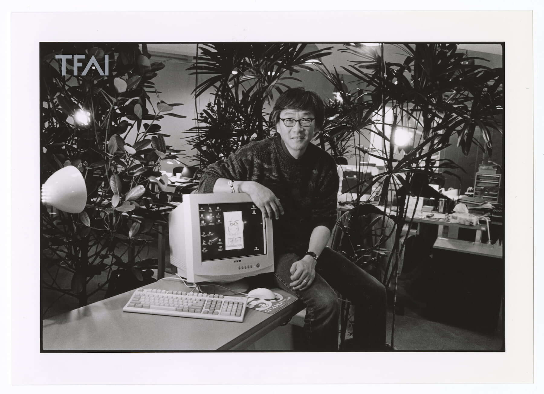 2001年,楊導接受《數位時代Business Next》雜誌採訪,由陳炳勳攝影師拍下此照。(圖片/國家影視聽中心提供)