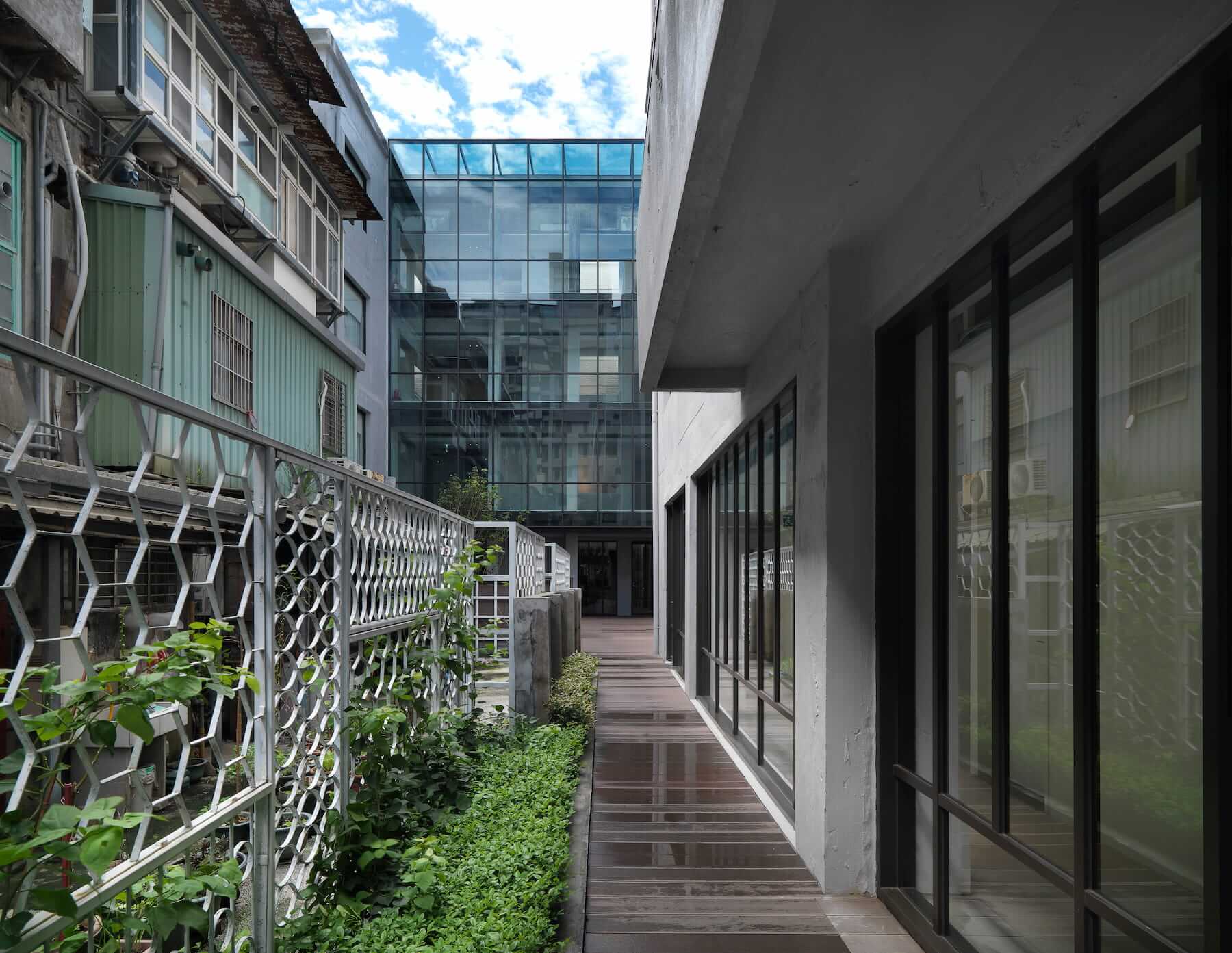 大尺建築將原有的圍牆拆掉,讓1樓只留下柱子,為空間創造穿透感,同時也打破公私領域,改變建築內與外的關係,再加上新切開的天井,帶進自然元素,形成水平與上下延伸的三度空間,開啟了建築與環境的關係;也藉由窗景拉進台北的舊城街廓,模糊城市與環境、新與舊之間的界線。