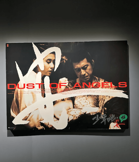 在展場中我們可以看見,劉開與何佳興等創作者將書法轉化為跨媒介的視覺語彙,廣泛應用於電影與表演藝術的海報設計。例如 1992 年由侯孝賢監製、陳懷恩執導的〈少年吔,安啦!〉——台灣新電影浪潮後期的代表性作品——劉開其海報以介於書法與街頭塗鴉之間的筆法構成:直率、不規則、筆觸衝決並帶有飛白。這種躁動的質地不僅呼應青春與社會邊界的主題,也使書寫本身成為影像敘事的視覺主體,而非輔助性的標題文字;觀者在第一眼便透過筆墨張力進入作品的情緒密度與社會語境。