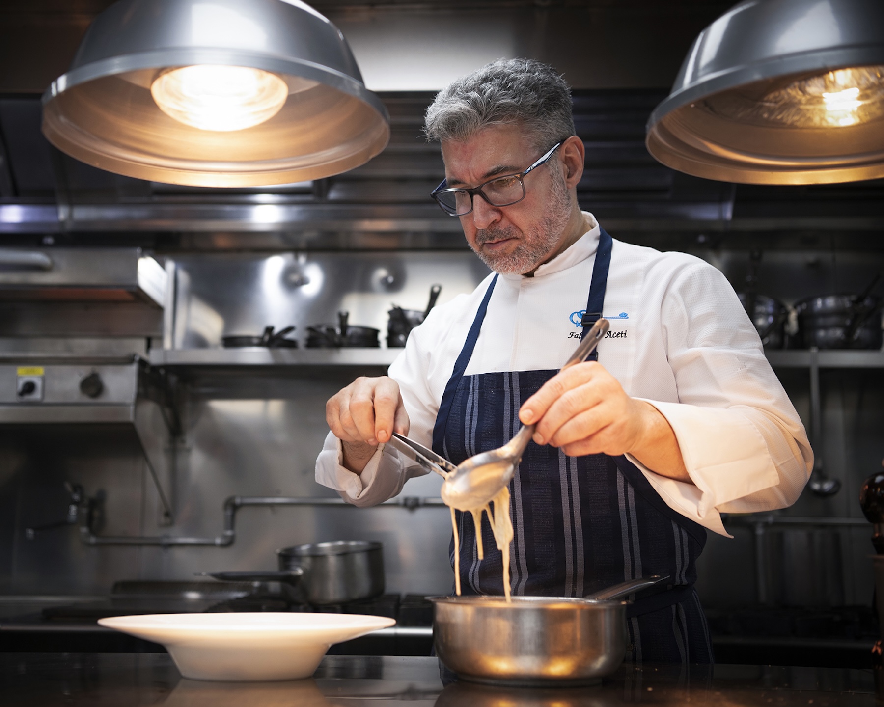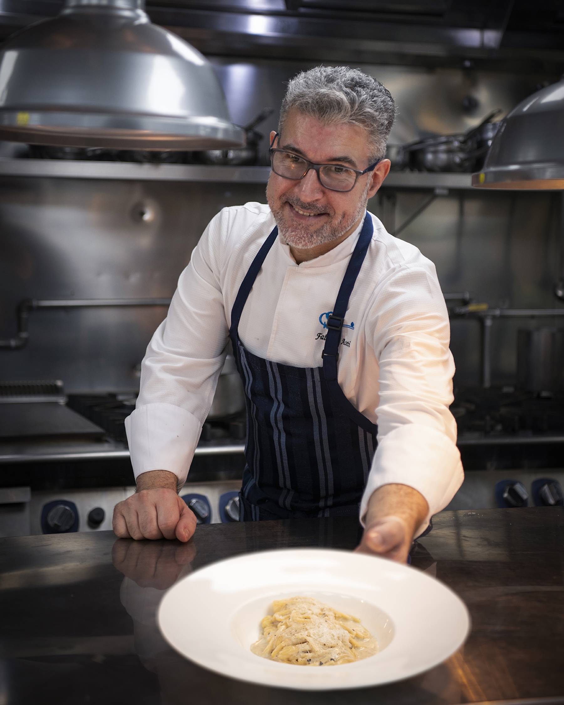 來自義大利西北部皮埃蒙特(Piedmont)的名廚法布里奇奧(Fabrizio Aceti),其職涯如同一場橫跨米蘭、巴黎、倫敦與亞洲的感官壯遊。他在多間米其林星級餐廳淬鍊技藝,並曾執掌四季、半島及香格里拉等頂級五星級飯店的行政主廚重任。對他而言,廚房不僅是實踐烹飪的場所,更是跨越三十年時裝之都生活見聞的「舌尖高訂工坊」。