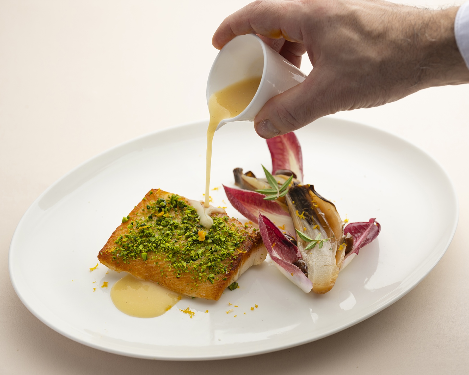 炭烤深海比目魚|柑橘比利時菊苣|塔吉亞斯橄欖