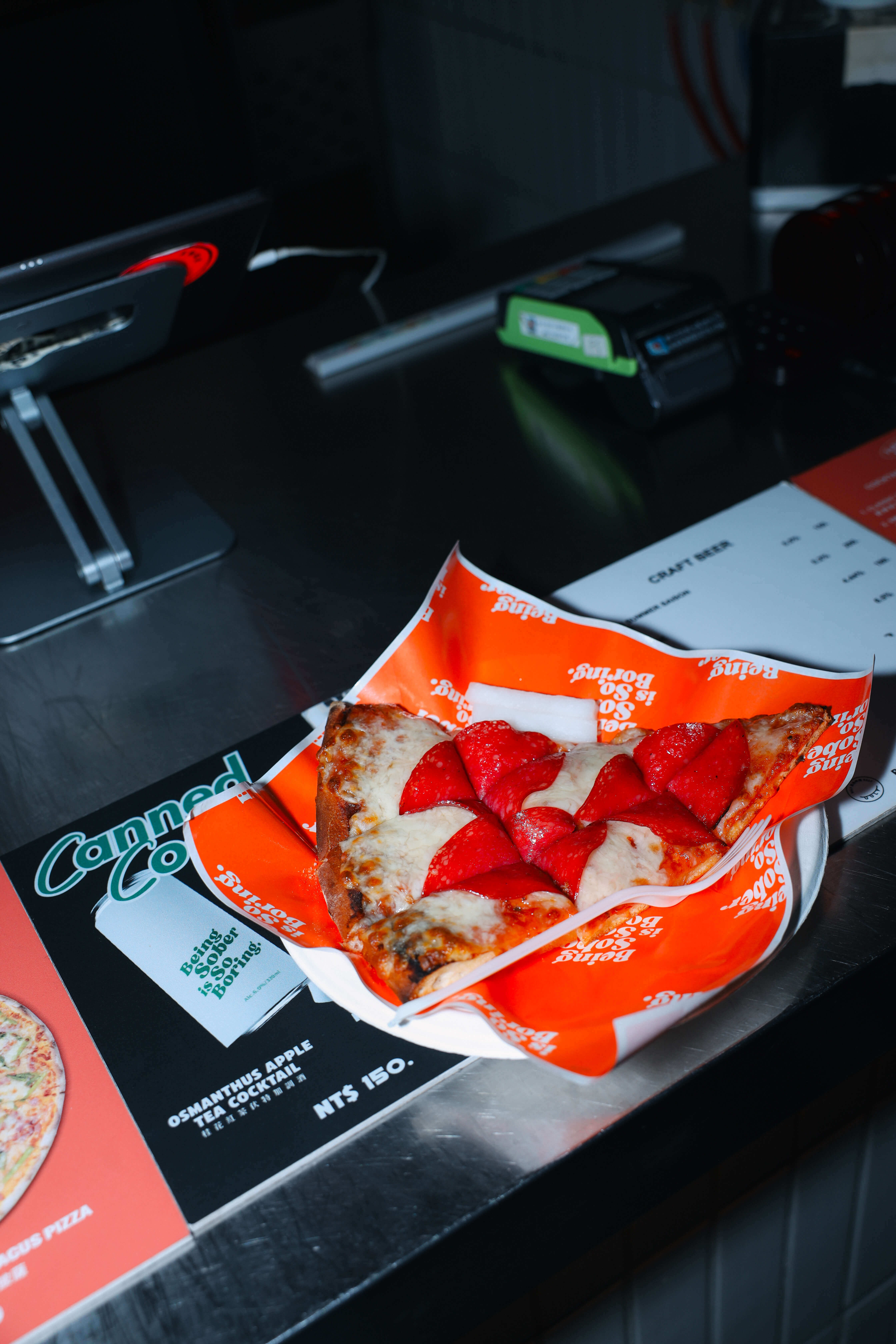 在韓國夜店附近看到生意超好的披薩店,於是決定也把披薩帶進Fake Sober。18吋大披薩從麵糰開始現擀製作,起司濃厚飽滿,吃起來爽度高。