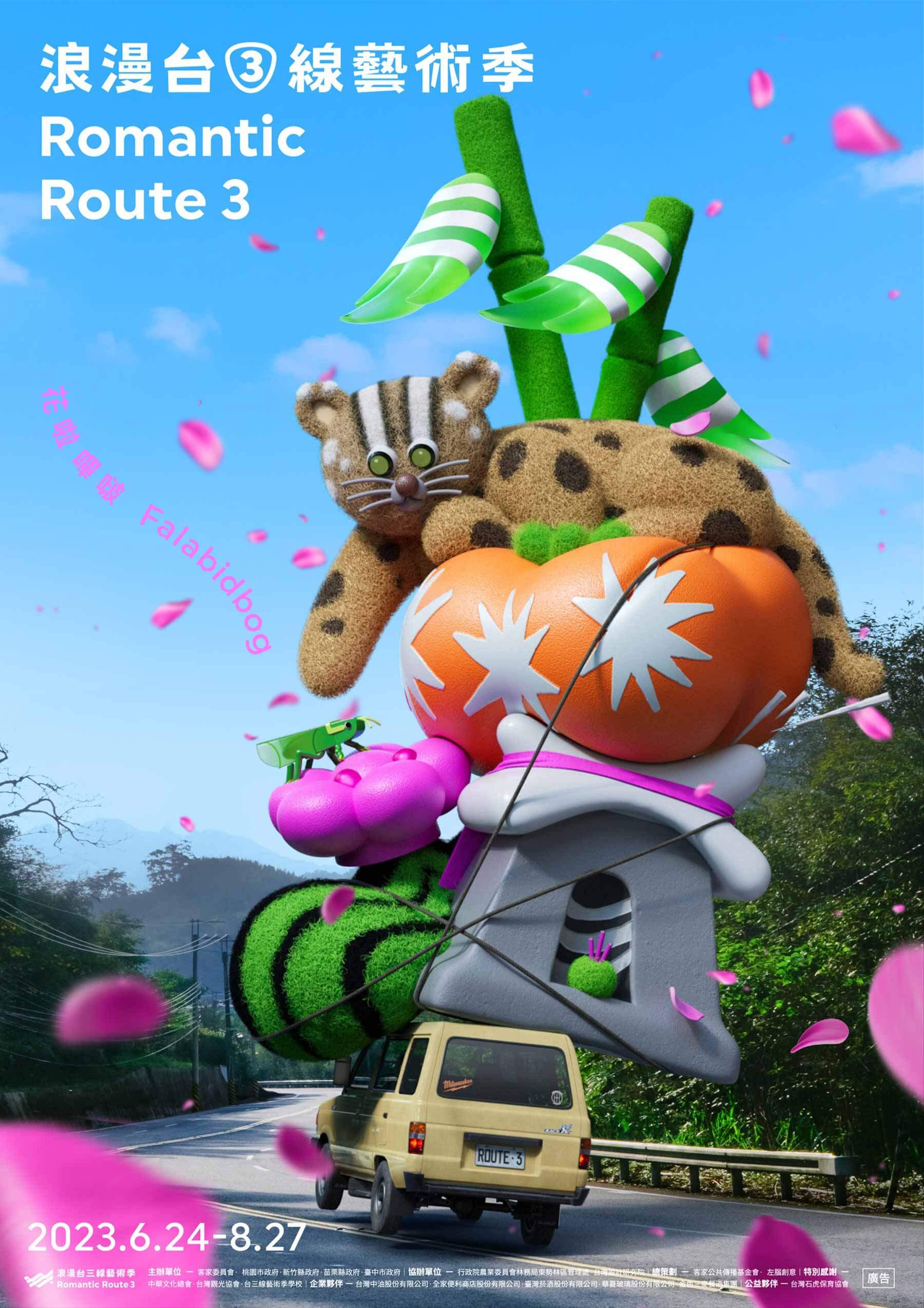 依循台三線,跨越北桃竹苗中五縣市、17個鄉鎮市、長達150公里的「浪漫台三線藝術季」以「花啦嗶啵Falabidbog」,從藝術與設計出發,帶領人們踏上一場盛大的公路旅行,提供更繽紛多元的客家想像。