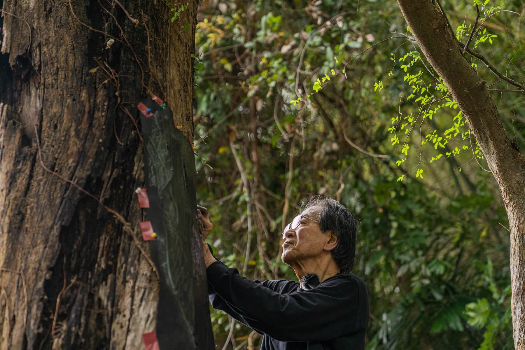 日本藝術家岡部昌生在台中東勢進行拓繪。(攝影/YLH)