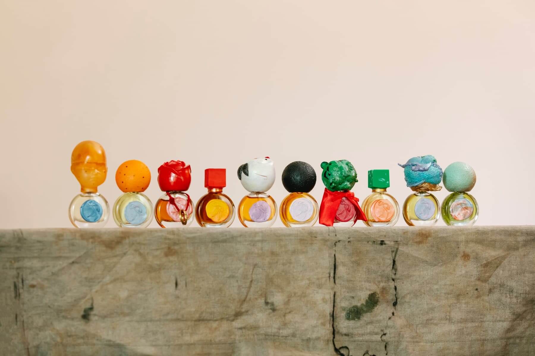 因此我以「東方力」切入,透過台灣在地特色、民間故事甚至傳說趣聞,賦予香水作品不同的意義和氣味表現。很幸運地,2020年遇到藝術家夥伴林倖安,她自己也是香水愛好者,我和她合作將氣味視覺化、具象化,讓香水瓶不只是容器,也是傳達故事的氣味藝術品。