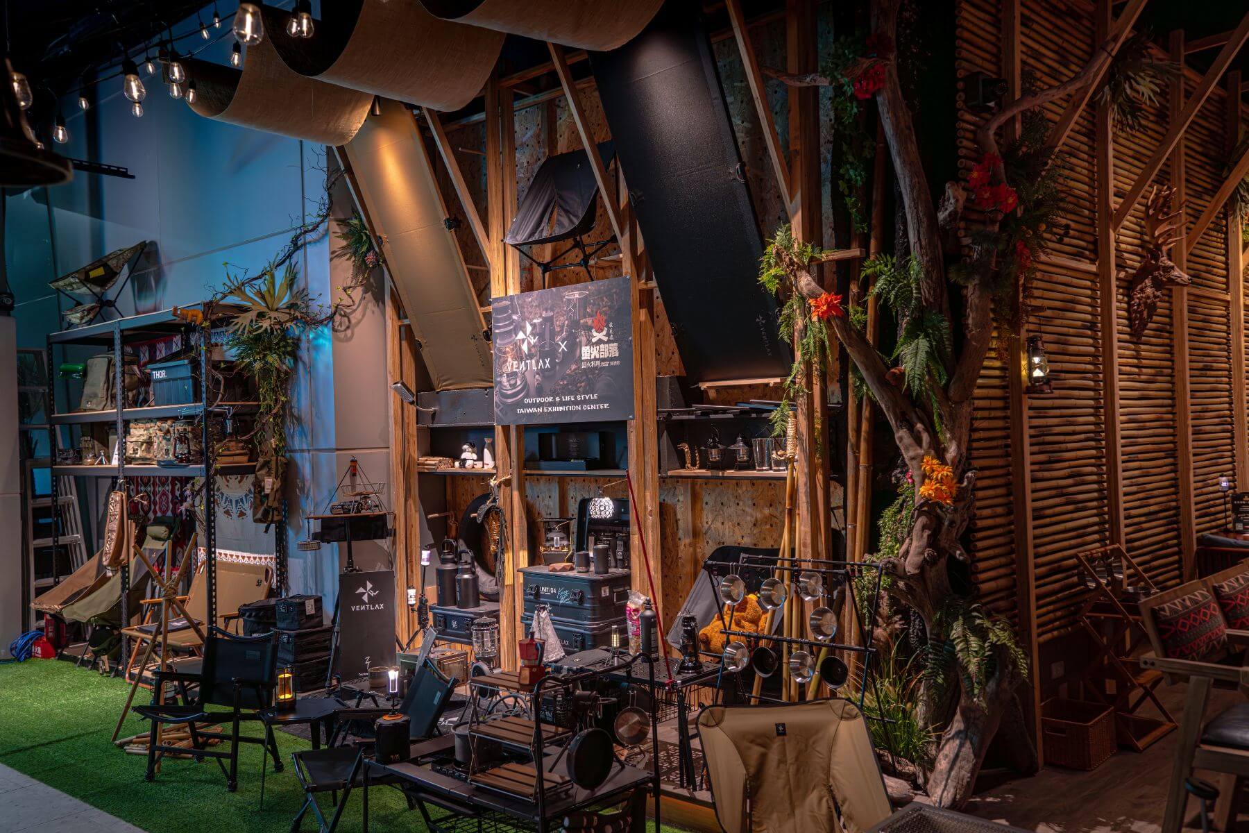 餐廳與日本露營品牌VENTLAX合作,讓真實的野營配備融入在消費者的使用空間裡。