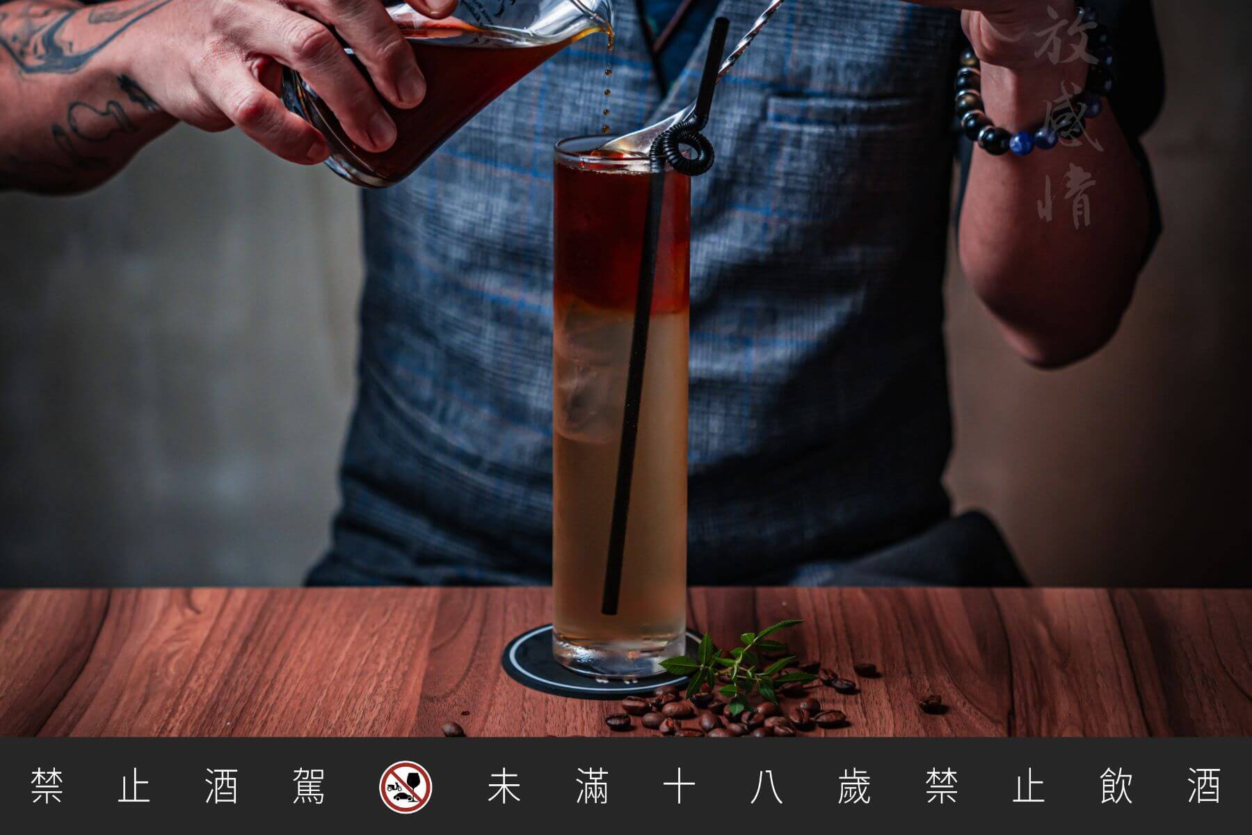 歸西冰茶:「放感情」品牌的經典調酒,以經典長島冰茶為基礎,加入新鮮柳橙汁,提升了柑橘的果香。再以生命之水增加酒體的濃度,最後以紅酒點綴,呈現出迷人的漸層色澤。每一口都能品嚐到多重風味的變化。