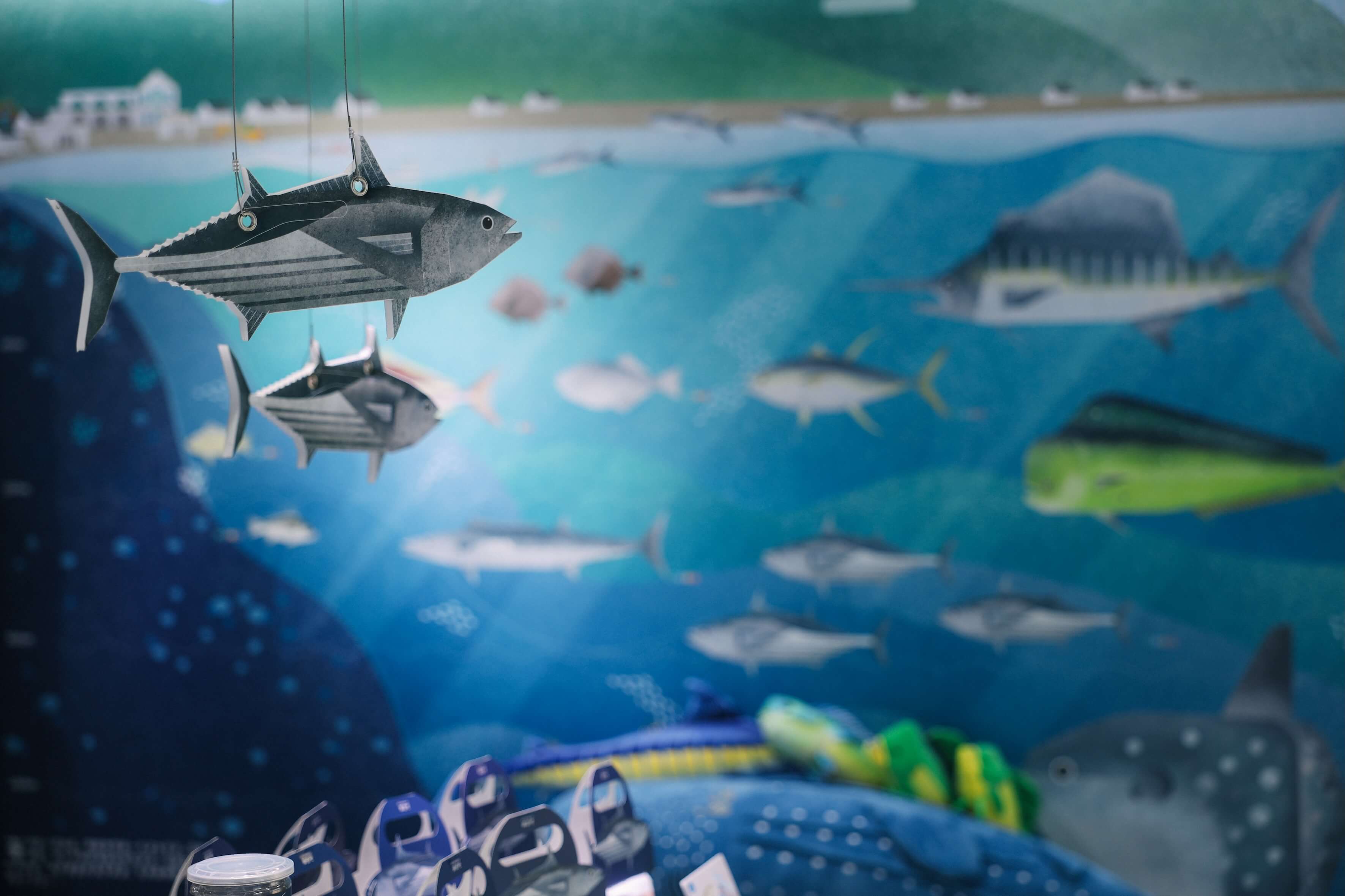 來到洄遊吧食魚體驗館,遊客可以領取尋寶圖,在整棟的室內外空間一關關地完成任務,透過好玩的互動認識到台灣周邊的36種魚類、常見漁法等。洄遊吧在商品包裝設計中也巧妙置入魚類知識的小問答;冷凍生鮮魚貨外包裝上的QR Code掃描後,能看到魚種的介紹、產地、捕撈模式,甚至建議料理方式,讓產品不僅能吃能用,更達到教育目的。當然也能直接報名體驗活動,在他們專業有趣的解說下,從認識魚、捕魚技法到親自DIY料理當地新鮮魚貨、享用魚料理,吃喝玩樂之餘,也完整地學習到對海洋永續友善的食魚知識。