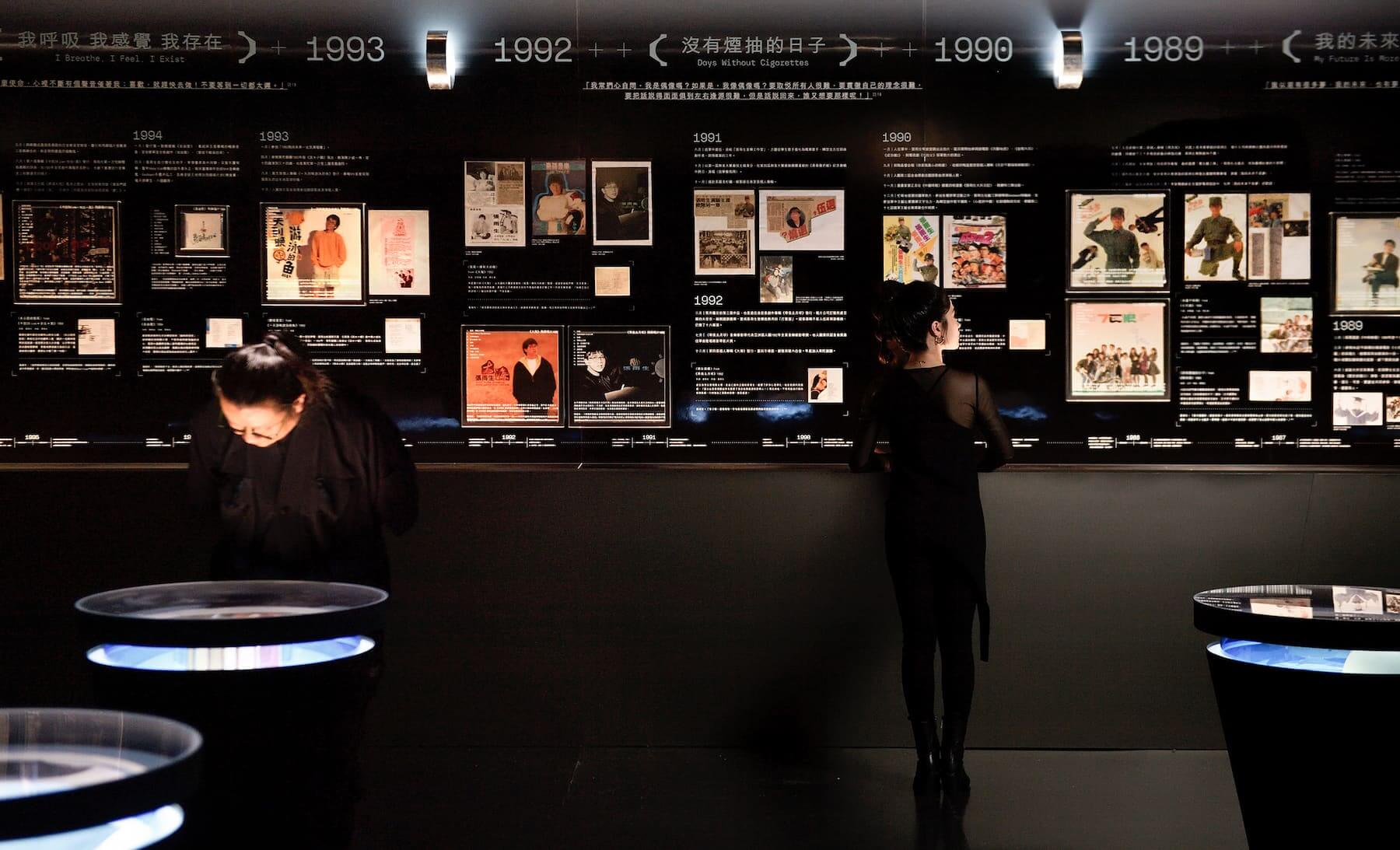 登月艦艙中『A Life Story 烈火青春』展區,大事記展牆將張雨生個人歷程與台灣音樂產業、社會脈絡並陳,結合歷史文物,梳理他在地球的生命軌跡。