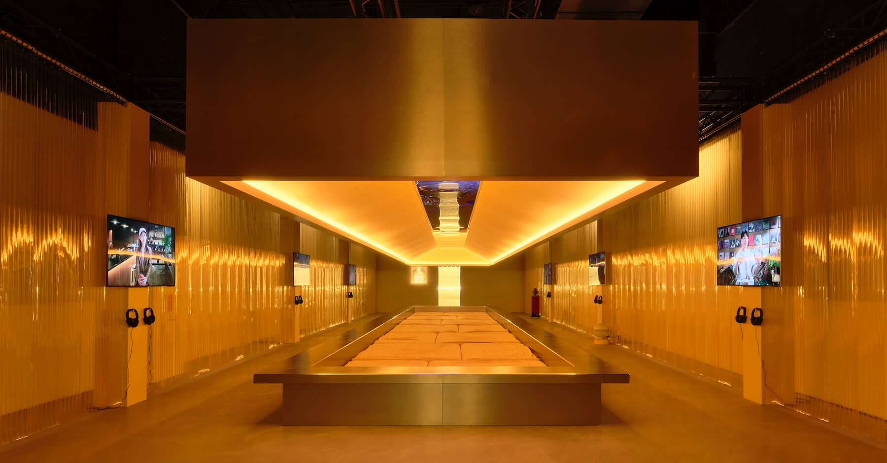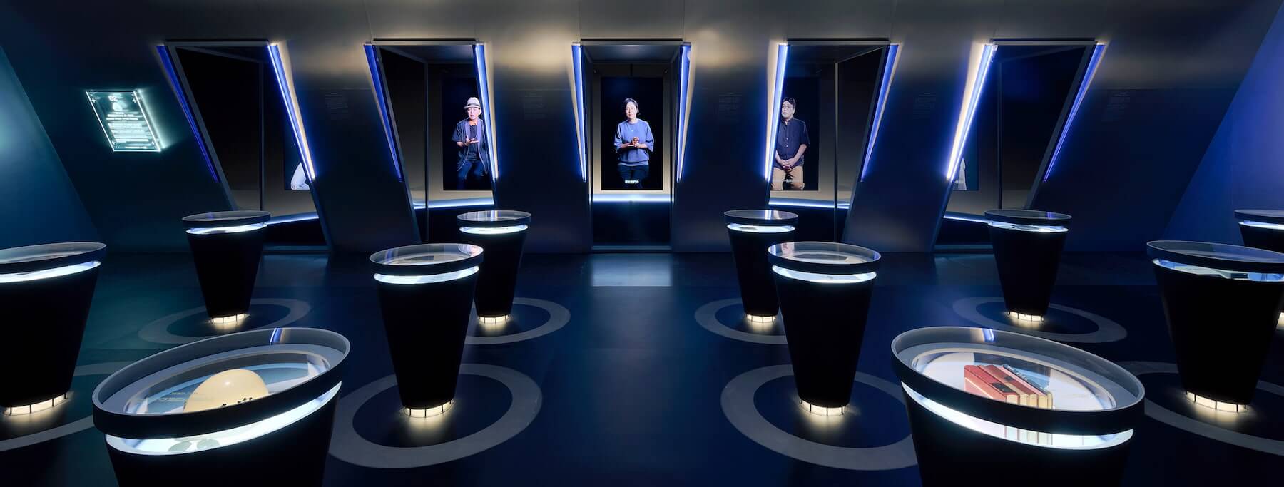 艙內配備了最具革命性的8K 量子電視、無邊際螢幕與極窄邊框設計,帶來極致的感官饗宴。當音樂太空人張雨生在控光細緻的螢幕窗景中出現,也為旅人揭開了宇宙航行的序曲。前往月球的太空船艦內,一盞盞聚光燈指引旅人探往張雨生在地球的生命篇章。