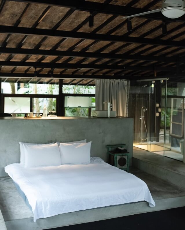 The Mist Gallery則是把荒廢的舊工寮打造成致敬越南順化的室內雨林空間,設計大量採用水泥,並在半自然空間種植樹木、打造流水、引入自然光,呈現如人間仙境般的氛圍。這裡提供「冥想洞穴」與「樹屋閣樓」兩種房型,同樣延續自然風格,無論是沐浴在綠意盎然的環境中,還是靜享夜晚星光灑落的浪漫時光,都能讓你遠離都市喧囂,沉浸於寧靜而療癒的秘境生活。