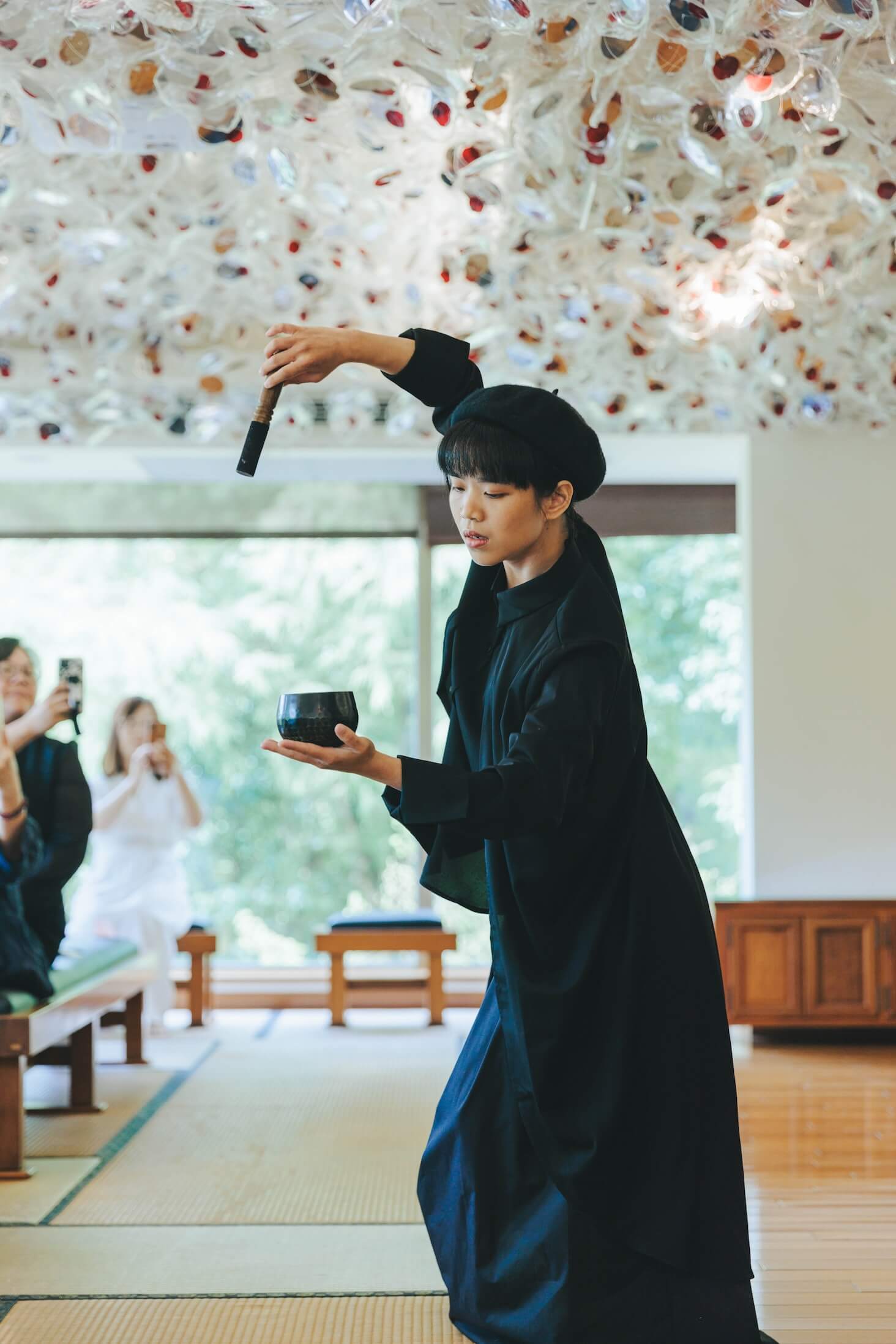 席間的舞音療癒演出,是如海在耳畔的海浪鼓與四元素風鈴的協奏,與茶席展演「夢浮」的詮釋「鳳凰擇梧桐⽽棲」 之⾼雅哲思,讓在場觀者感受不斷旋轉的舞者帶動能量中心,品味手中木栅老泉里的鐵觀音冬茶——以高度發酵、文火團揉、中高溫焙火的芬芳傑作,將美好的時光溫度留存在心中。