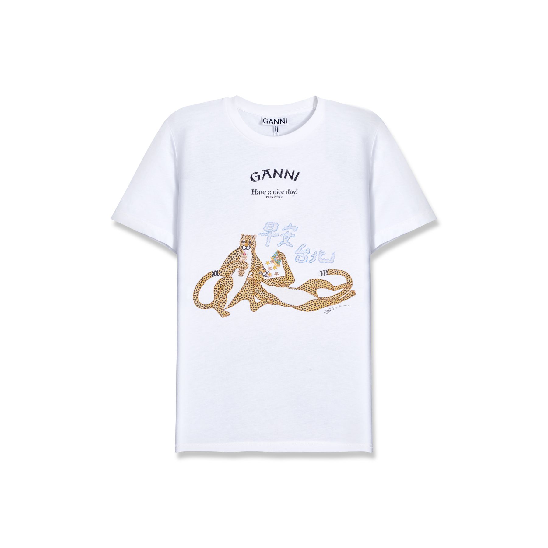 每一次進軍新的國家,GANNI都會與在地藝術家合作,汲取當地文化的魅力與品牌標誌性元素結合,打造限量發售的產品。此次品牌與台灣新銳藝術家Patty Tsai蔡貝桾合作,Patty標誌性的作品獵豹,也恰巧與GANNI對豹紋的大量應用完美契合,「早安台北限定T恤」因此誕生。這款全球唯一的「早安台北限定T恤」將在GANNI全台首間形象店內限量販售。