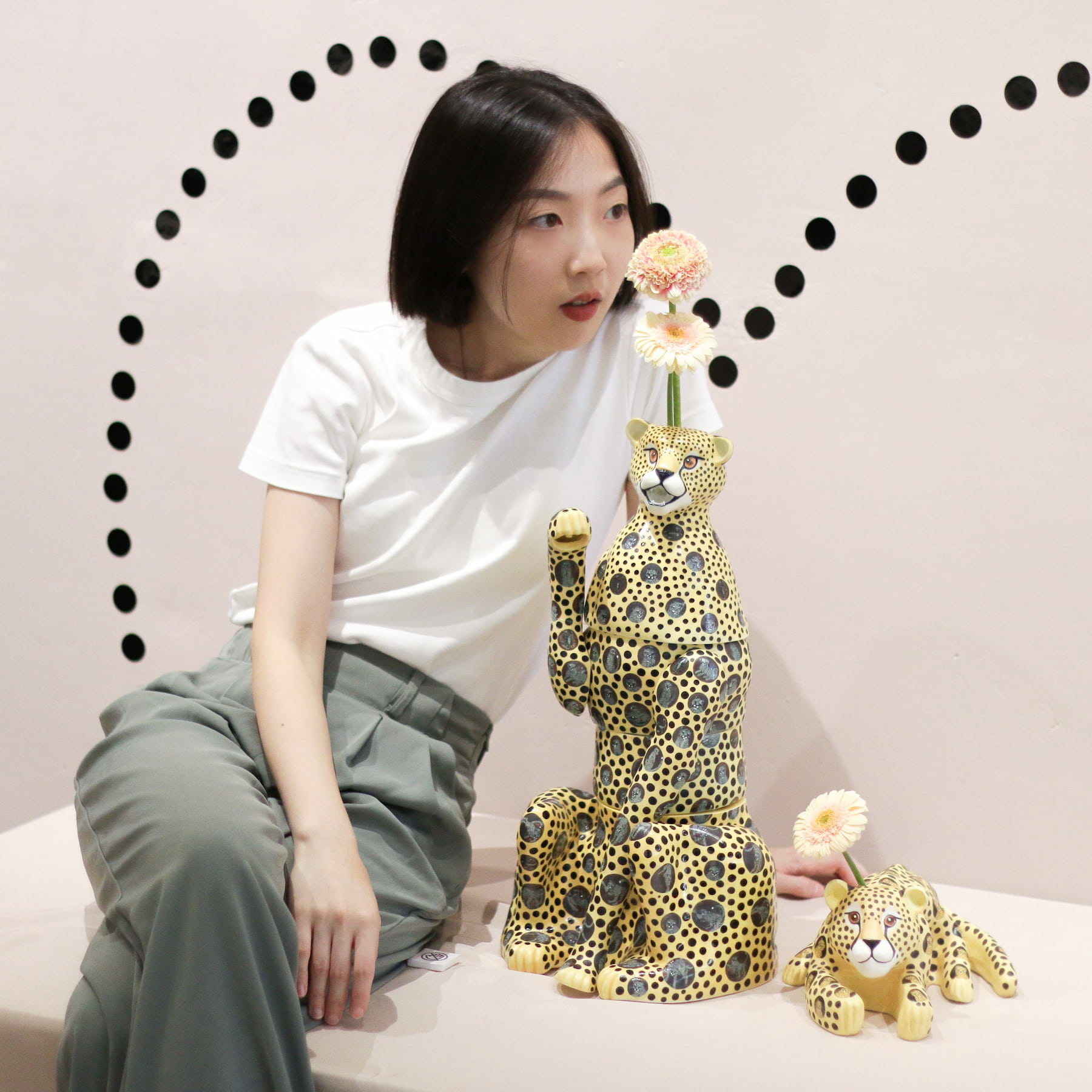 早安台北限定T恤- NT3,800(左圖),台灣新銳藝術家Patty Tsai蔡貝桾與其獵豹藝術品(右圖)。