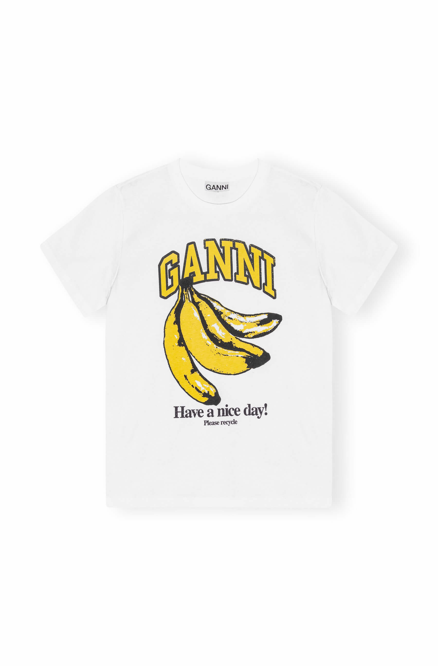 趣味的印花配上GANNI logo,是經常能在社交軟體上看見的GANNI單品,春夏系列除了櫻桃、香蕉等水果造型,還有貓咪、兔子、海馬等可愛動物款式,貫徹任何單品都能百變搭配的精神,為趣味造型定下基調,堅持100%有機棉的材質,更是對環境永續的宣告。