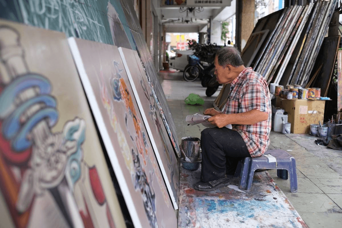 求學期間在南部生活的Lee,對於顏振發在台南全美戲院所繪製過的電影畫報歷歷在目。與多數顏料手繪畫師不同,Lee覺得,顏振發直接用油漆調色的做法,非常大膽狂野,「老師的手藝,就算放到國際上給予檢視,依舊稱得上是獨一無二的存在,我覺得他非常能代表台灣。」