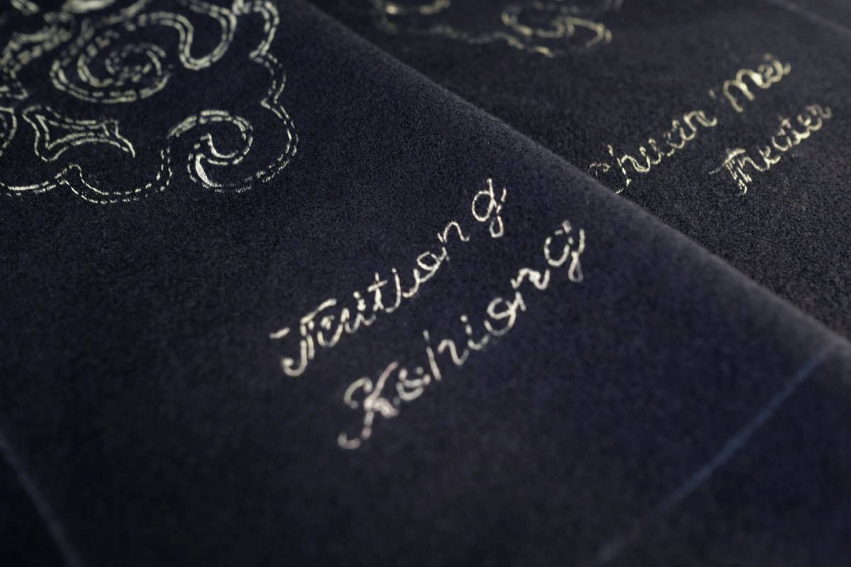 這些宛如藝術品般的刺繡,來自GAUTE特別聘請的高雄在地手工電繡師傅,將這門逐漸失傳的手工技術搬到世人眼前,手工電繡不僅精細、繁複,製程工時也相對耗神,從描圖、翻印、對位置,再到開機刺繡,每個圖案都得花上數小時,最終,老師傅花費一個半月的時間,得以完成14樣訂製單品的圖樣刺繡工程,在高度精密的針黹間傳遞高級訂製服(Haute Couture)精神,「刺繡本身也非常具有東方色彩。」Lee說,他尤其認為,即便當前電腦技術刺繡已能做到非常精準的地步,但是呈現的效果還是過於平面,「這種立體感,是電腦刺繡所辦不到的。」