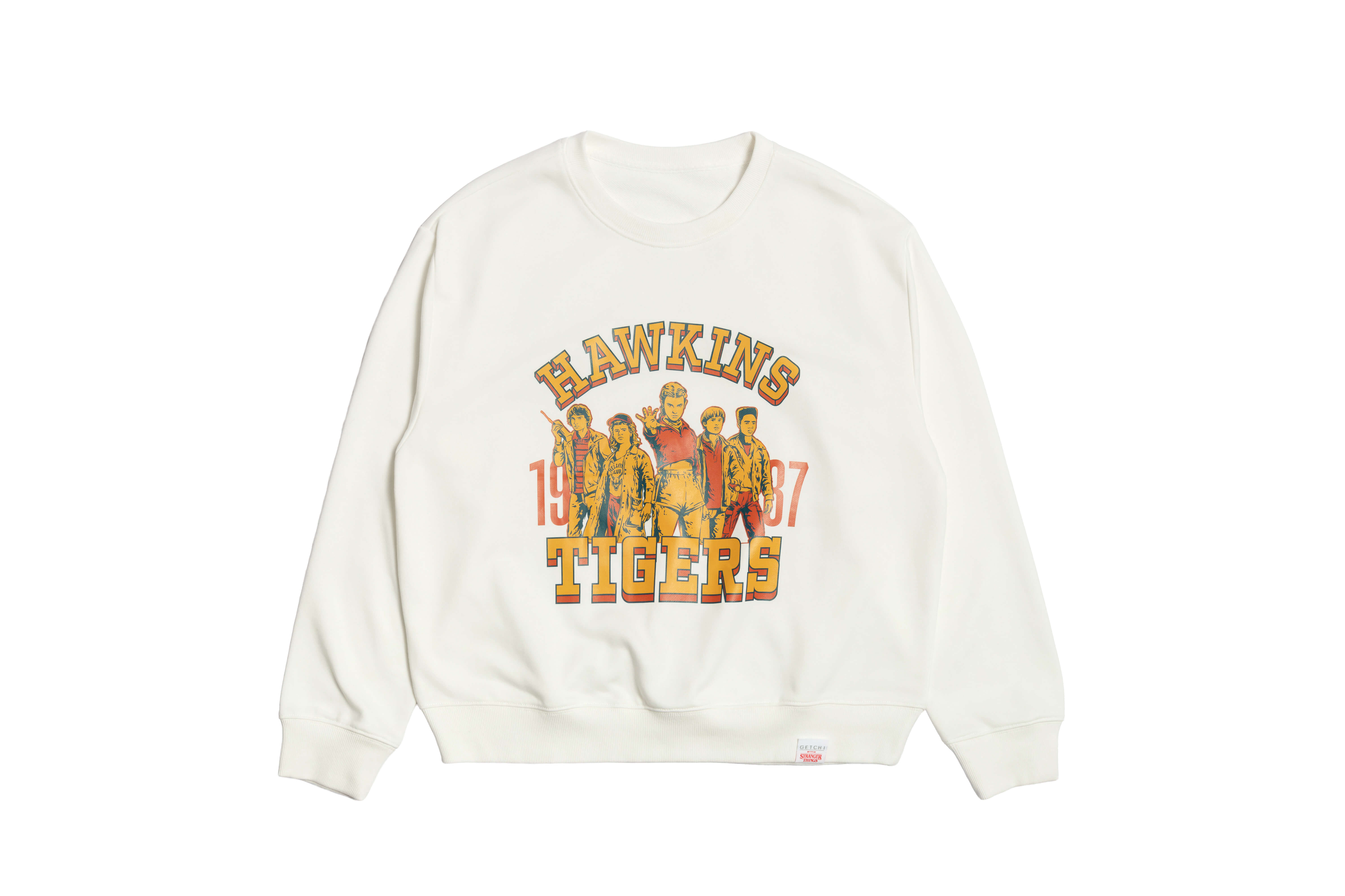 與其說這次聯名是粉絲福利,不如說是《怪奇物語》轉化成了現實。GETCHI將影集裡的大量符號翻譯成可穿戴的細節:Demogorgon Flower的形體、主角群的插畫凝視、Hawkins Tigers的校隊意象,都以更克制、更乾淨的語言重新長在布料上。