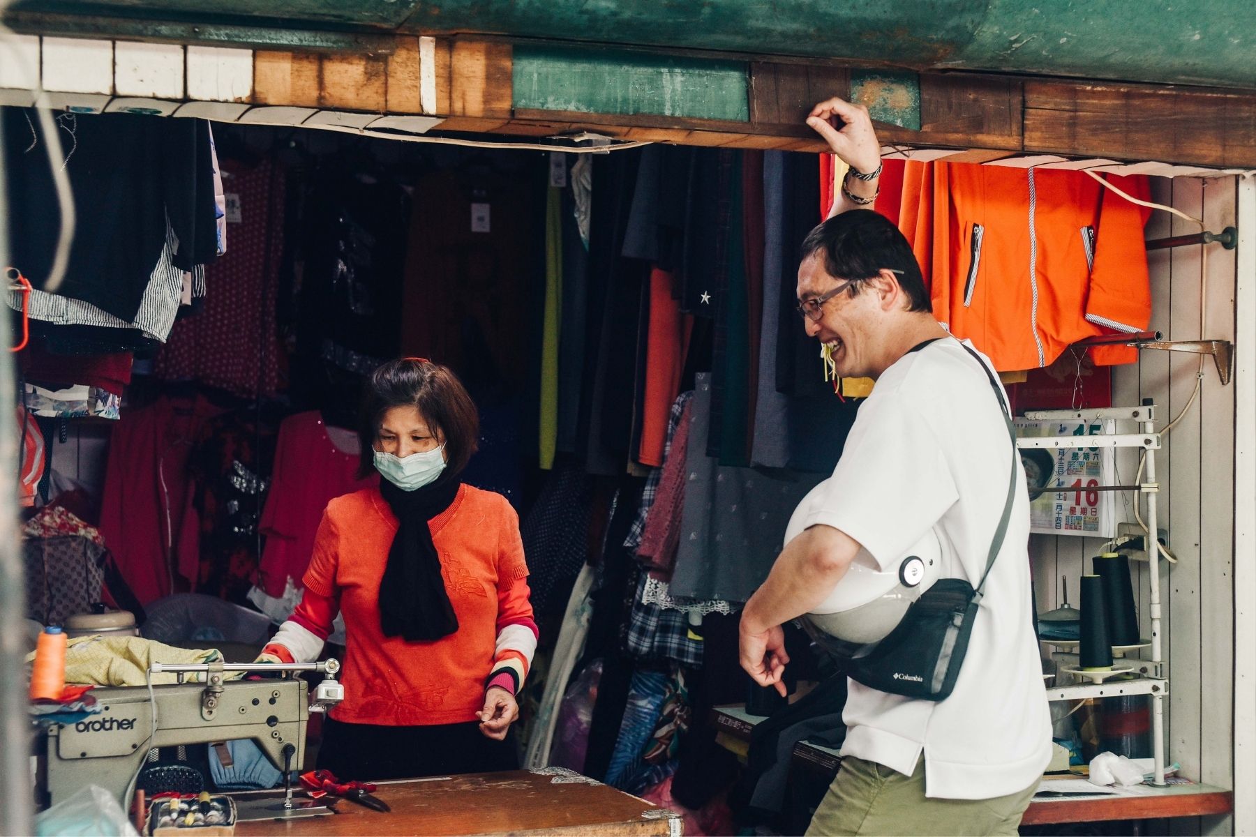 李翔自然地與菜市場中偶遇的店家阿嬤閒聊,彷彿認識多年。