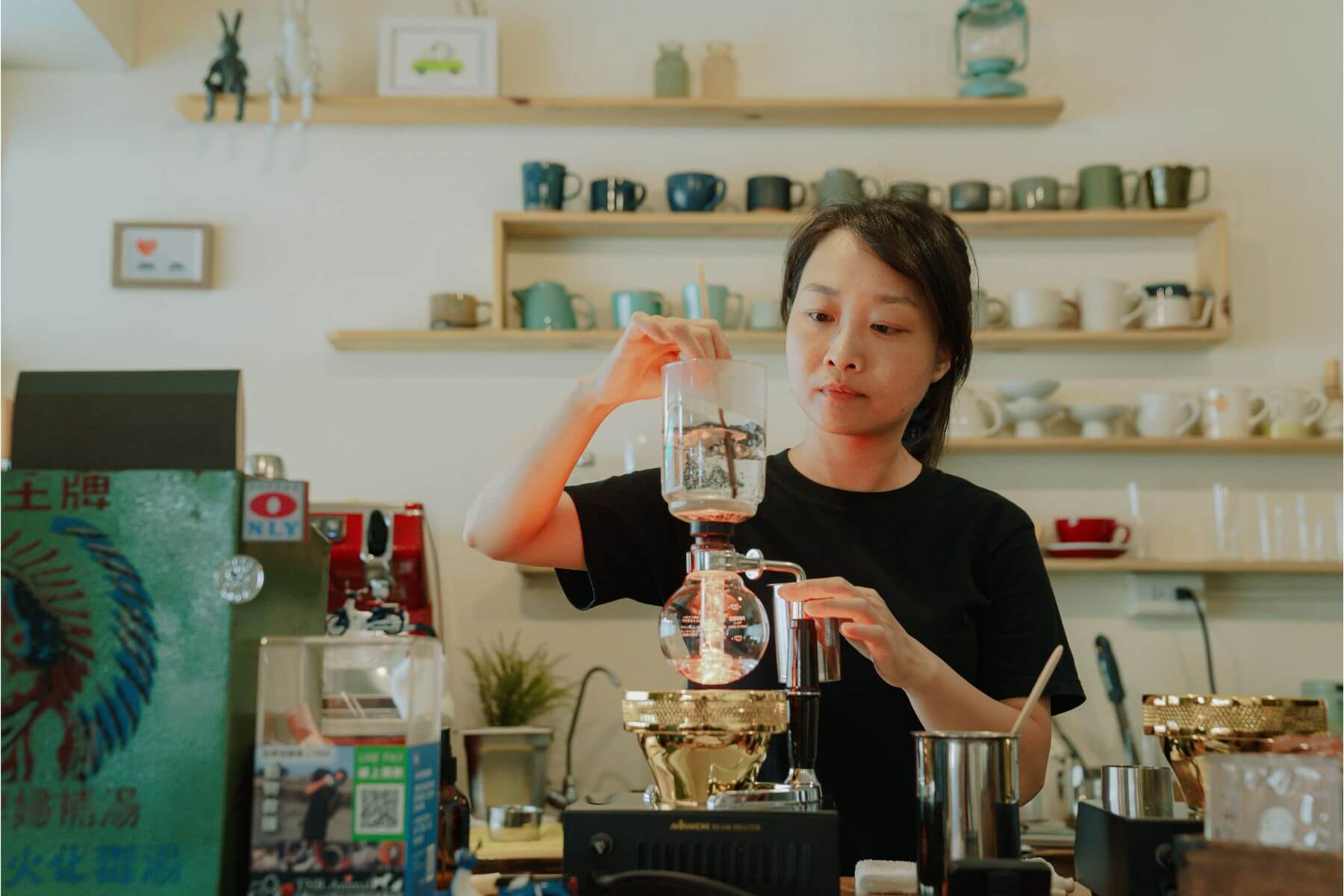 來自白河的店主張議云,曾在台南席瑪朵咖啡館工作六、七年,擅長以虹吸壺手沖咖啡,兩年前,看到鹽水唯一一家咖啡館「霜」頂讓的消息,在家人鼓勵下接手後改造為風格雅緻的本店。店內約有六、七種單品咖啡,皆是她親自挑選喜愛的風味來分享,以淺焙和中焙為主。店內另有檸檬、粟子抹茶等口味磅蛋糕,最推薦的是肉桂捲,淋上檸檬乳酪醬後,富香氣且滋味酸甜,味覺層次豐富。