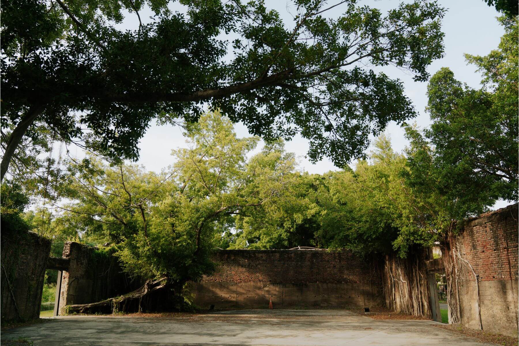 鹽水小火車站原為運送蔗糖的五分車鐵道,也是全台第一條糖鐵載客營業線,曾是鹽水及鄰近地區學生通勤和民眾對外連結的交通工具。車站對面整排倉庫,計有六座,原部分為岸內糖廠所有,用以儲放菸草;部分為空軍第二後勤支援倉庫,存放許多飛機輪胎、毛毯等。1982年底倉庫曾發生火災致毀壞,留下牆面一片漆黑顏色,經多年荒蕪,高大榕樹的樹根攀爬,與倉庫牆體形成盤根錯節的景色,有如鹽水祕境,近年成為遊客熱門拍照景點。
