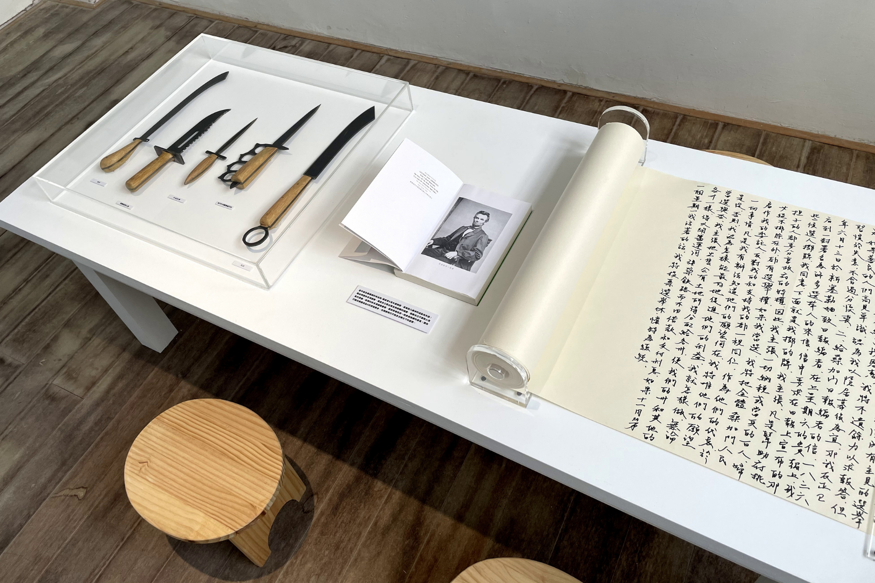 「你不要講日文,因為你不是日本人。」從小跟外公外婆長大的陳依純,長大後對外婆的這句話印象深刻,也開啟了陳依純的創作從家族史出發,在探究家族精神狀態的過程中,發現更多關於國家認同與當局政治的歷史問題,此次作品《戰後野人手札》中的獵人,亦是陳依純依據兒時記憶,有意識的提問道:「獵人」是誰?而獵人究竟是在躲藏還是在獵殺?