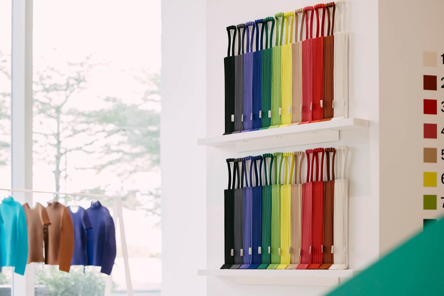 共有十色的調色盤密褶,一字排開十分壯觀,主打品牌標誌性的經典密褶面料,展現服裝獨特的紋理之外,親膚材質穿上也十分舒適,以撞色的巧思與十色圍巾相互碰撞,享受色彩搭配的樂趣。而圍巾綿軟、輕盈、多變化,突破了人們對圍巾的搭配框架,因應調色盤系列,此次將以「選擇色彩的喜悅」點題,打造活潑繽紛的POP UP。
