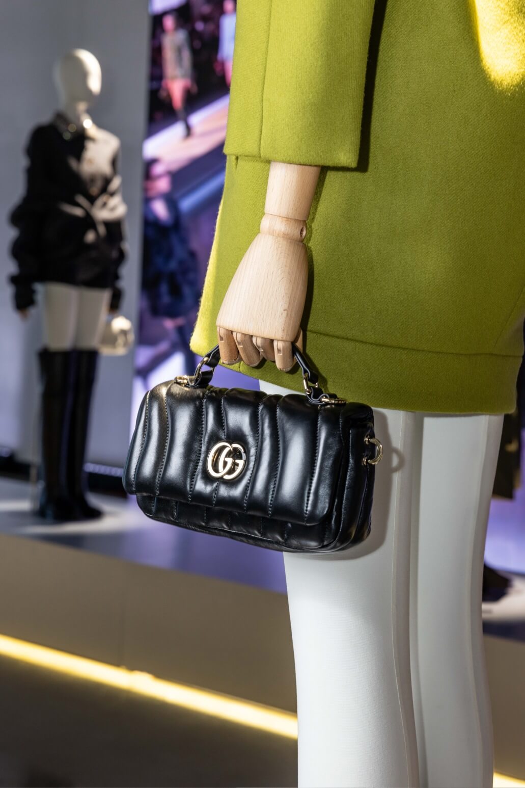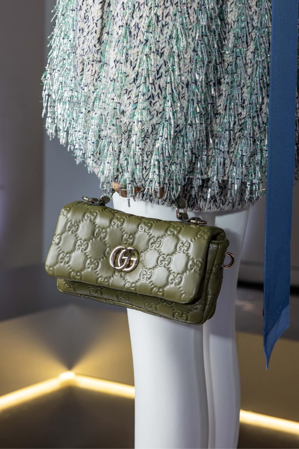 在此次活動中,品牌特別邀請了張震、温貞菱與雷嘉汭三位藝人,他們以獨具特色的穿搭詮釋了Gucci的創新理念。張震選擇了oversize白色翻領漆亮皮大衣,搭配窄版長褲與Jackie大型托特包,上寬下窄的輪廓展現出沉穩與高雅並存的氣質。温貞菱則身穿綠色亮片刺繡針織套裝,三色亮片增添刺繡的豐富層次,搭配GG標誌壓紋設計的GG Milano包款,完美演繹高級訂製服的工藝之美。雷嘉汭選擇了GG標誌壓紋的粉藍色繭型剪裁皮革大衣,搭配全新半月形包款,展現出前衛與現代感的完美融合。