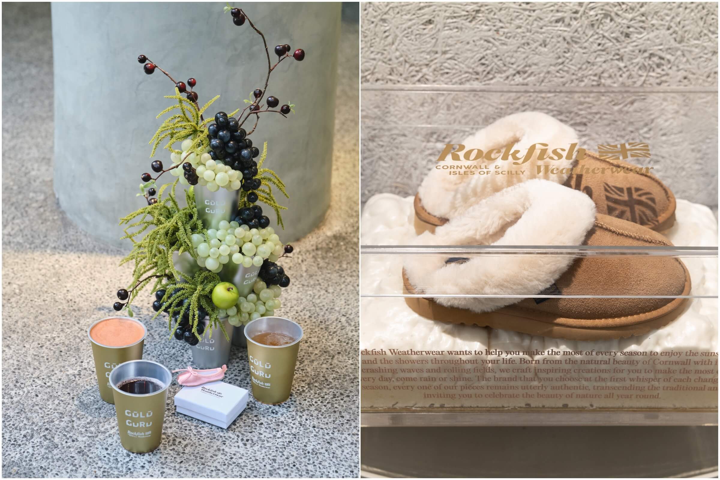 雙品牌的交會始於2025年夏天。那時Rockfish Weatherwear於東區開設首間旗艦店,攜手GŪLŪ GURU推出的聯名調酒便在各大社群平台引發討論。隨後,Rockfish Weatherwear 陸續在中山開設街邊門市,並進駐各大百貨與城市據點,從鞋履出發,延伸為日常穿搭中的風格選擇,自然融入城市女性的生活節奏。